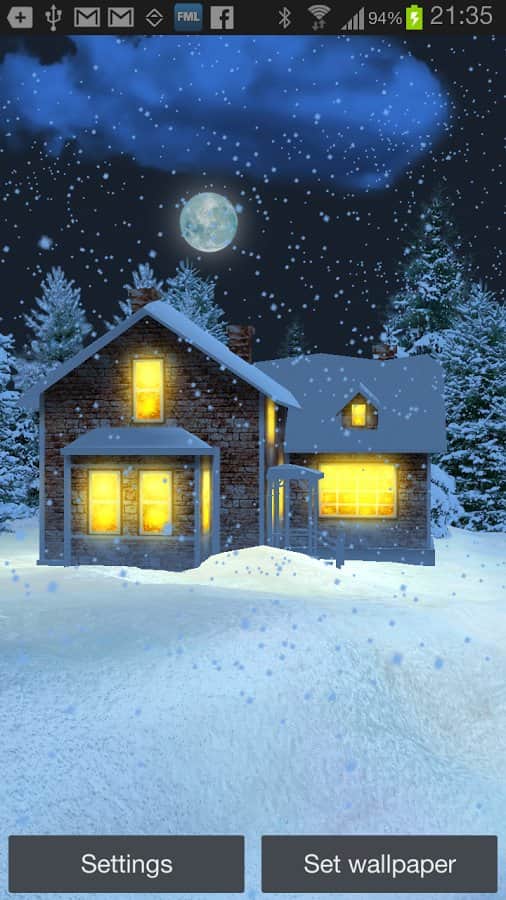 Снег HD Free Edition – клевые снежные живые обои для андроид с большим количеством возможностей. Вас порадуют: дизайн, качество, большое количество настроек, 3 режимы камеры, привязка к вашему времени суток и многое другое.