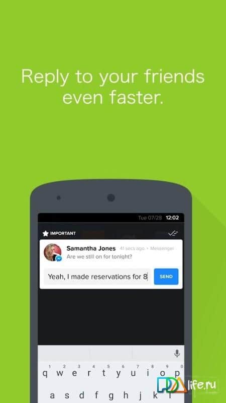 Еще одно большое преимущество программы в том, что она позволяет отвечать на входящие сообщения сразу, не переходя в соответствующее приложение.