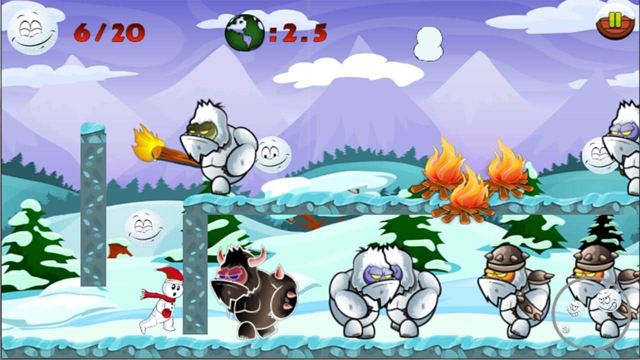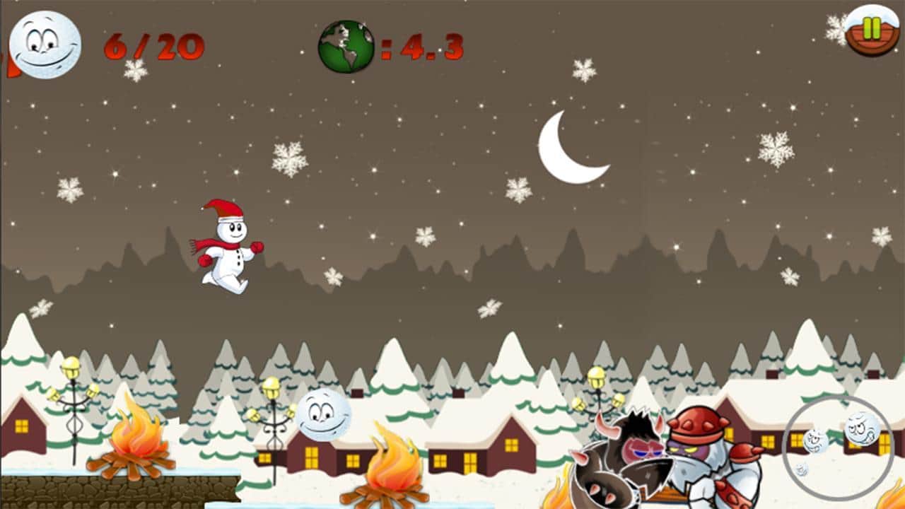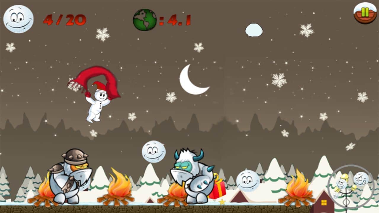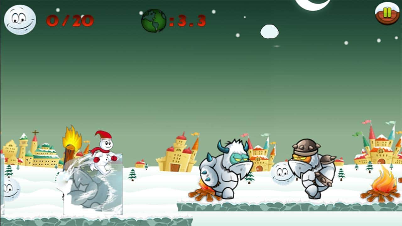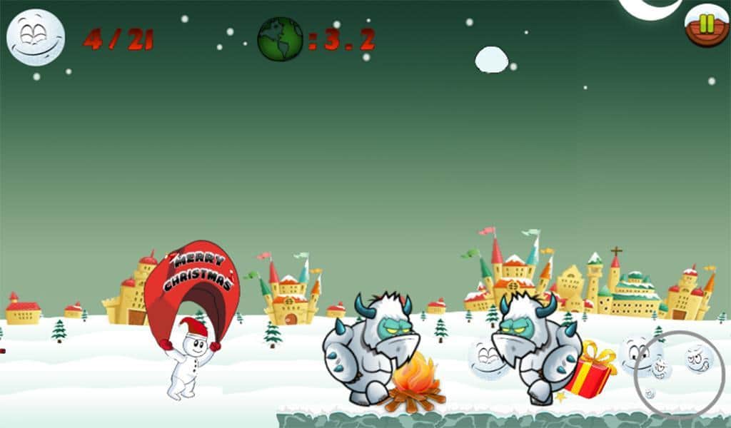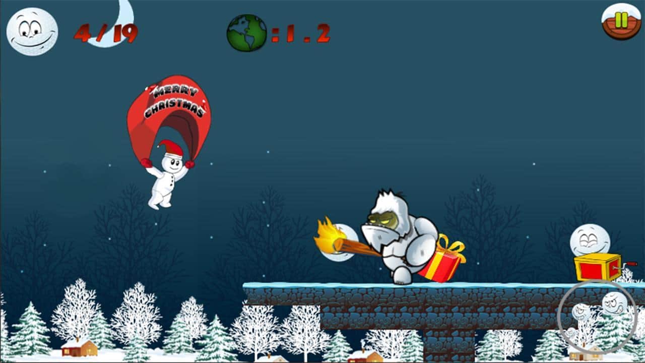 Snowman Run – платформер на андроид, который перенесет вас в заснеженную сказку и приблизит зимние праздники. В этой игре вы возьмете под свой контроль веселого снеговика, которому предстоит проложить нелегкий путь через заснеженные миры наполненные злыми йети. Бегайте по праздничным уровням и собирайте снежинки и подарки, которые пригодятся вам для борьбы с врагами. Прыгайте по платформам и замораживайте йети с помощью снежинок, а также не забывайте собирать бонусы и обходить все преграды. Открывайте для себя новые уровни с четырьмя мирами и не дайте вашим врагам сорвать праздники.