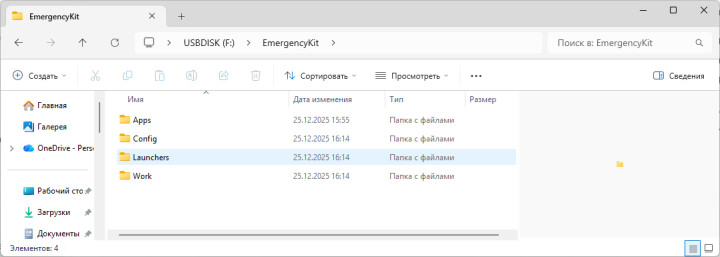 Ваш набор может быть насколько угодно большим и включать любые приложения. Когда все необходимые файлы скачаны, распакованы и подготовлены, формируем на флешке или в облаке следующую структуру. Корневую папку назовем EmergencyKit — это наш тревожный чемоданчик. Внутри создаем папки