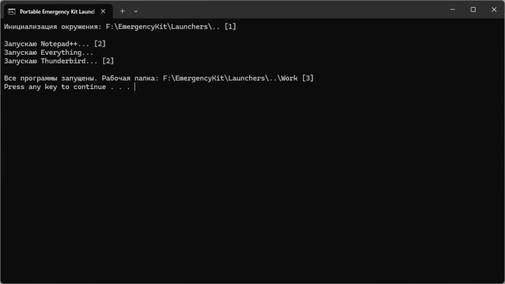 echo Все программы запущены. Рабочая папка: %WORK% [3]