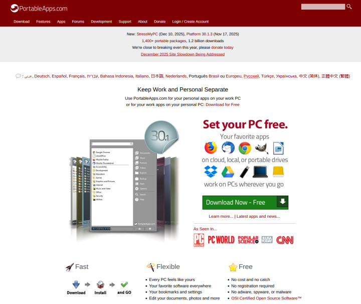 Портативные приложения для большинства задач можно найти на сайтах Portable Apps или Portable Freeware — это объемные каталоги с большим набором портативных программ, систематизированных по категориям и с удобным поиском. Если нужно что-то специфическое, есть смысл заглянуть на страницу разработчика интересующего вас софта на GitHub. Если официальная портативная версия программы существует — она там найдется.