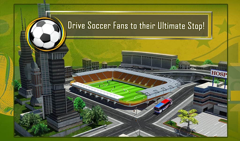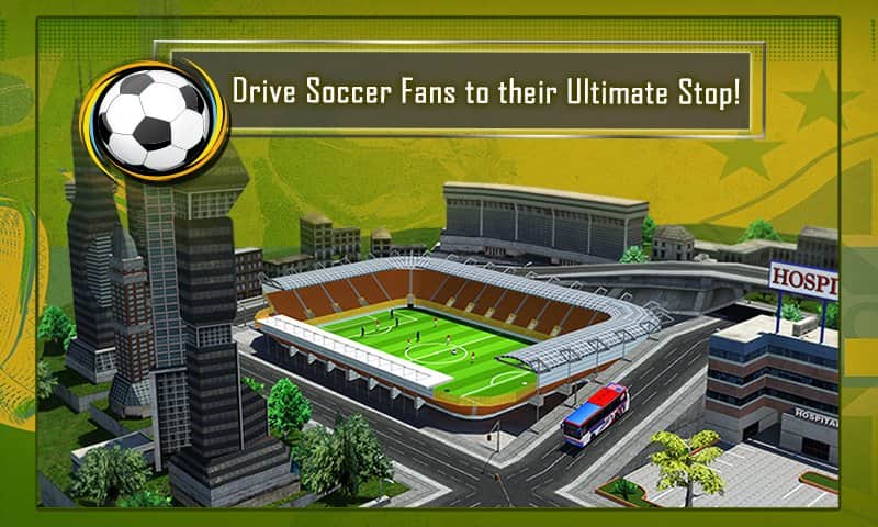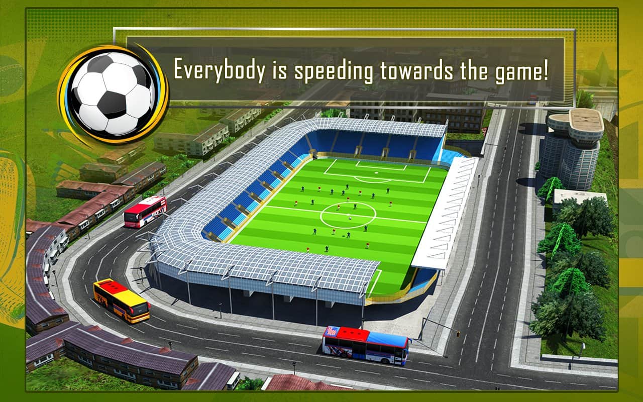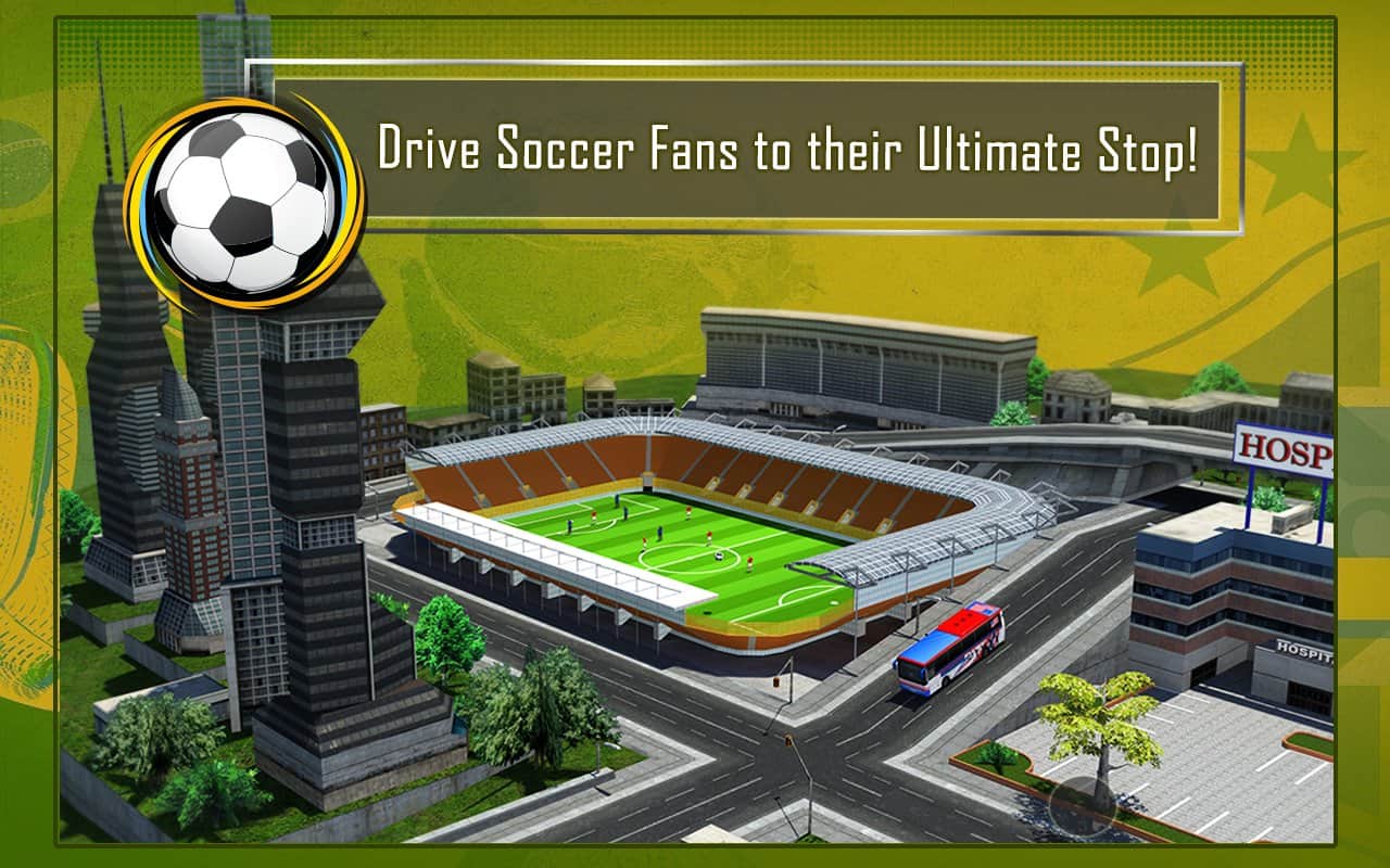 Soccer Fan Bus Driver 3D - хороший симулятор на андроид, в котором вы будете доставлять всех болельщиков футбола на главный футбольный чемпионат. Управляйте автобусом и собирайте всех фанатов футбола с автобусных остановок, и таким образом помогите им осуществить свою мечту и попасть на чемпионат мира по футболу 2014 в Бразилии. Езжайте аккуратно, преодолевая все препятствия и блоки на своем пути, и старайтесь доставить фанатов во время на самое главное событие в их жизни.