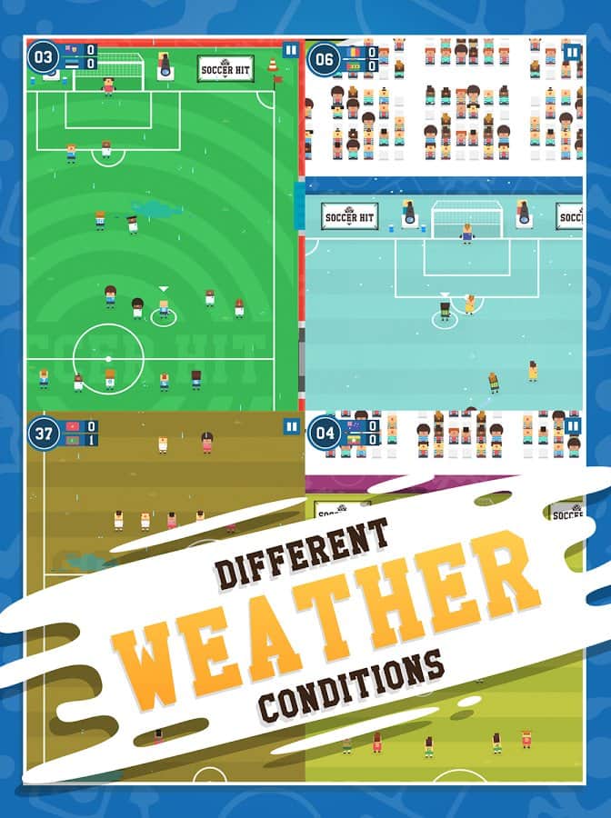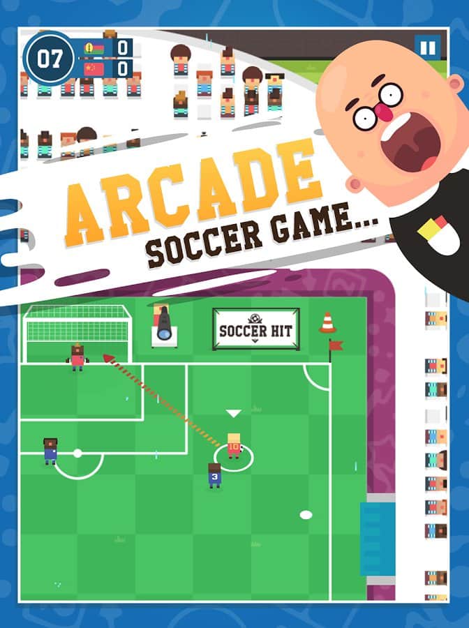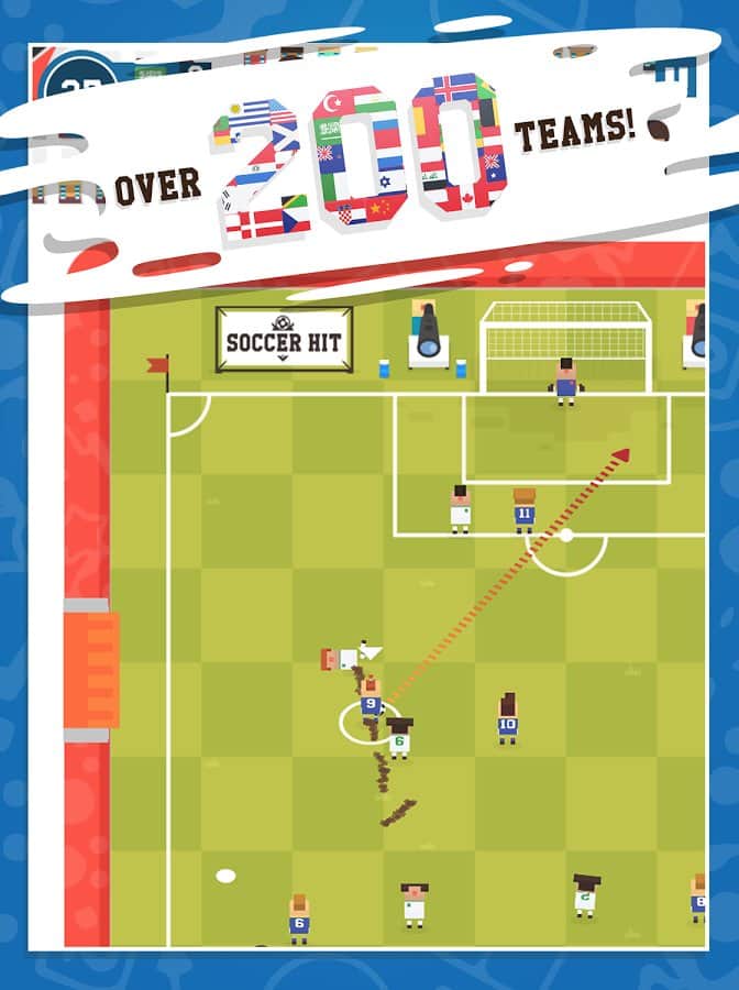 Soccer Hit – увлекательный футбол на андроид, с пошаговыми действиями. Выбирайте себе сборную их представленных в этой игре более 200 команд и начинайте игру. Проведите по экрану своего девайса пальцем и выберите удачную траекторию броска так чтобы подать мяч нападающим и забить долгожданный гол. Покажите на деле всю свою меткость и точным ударом отправляйте мяч в ворота соперников, а также не забывайте защищать свои ворота от атак конкурентов. Примите свое участие в розыгрышах различных кубков Европы, Азии, Америки, Африки и других стран. Выигрывайте отличные призы и устраивайте свой кубок, который будет престижной наградой для каждой команды. В игре представлено более 200 команд, 3 игровых режима, таких как быстрый матч, кубки и карьерная лестница.