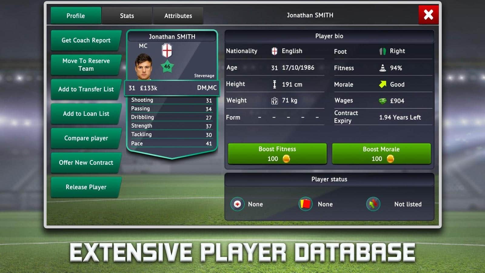Блин игра круть! Очень хороший футбольный менеджер, единственное что не хватает игре это русского потому что, в этой игре он обязательно нужен чтобы понять интерфейс, и хорошо взаимодействовать с игрокам, и их фишками. Но это можно понять потому что разработчики не из России, и вообще она недоступна в нашей стране. Жду русского. Многие хотят взлому но мне она не в кайф, и вообще удовольствие ты не получишь. Ну игра зашла, одобряю:)