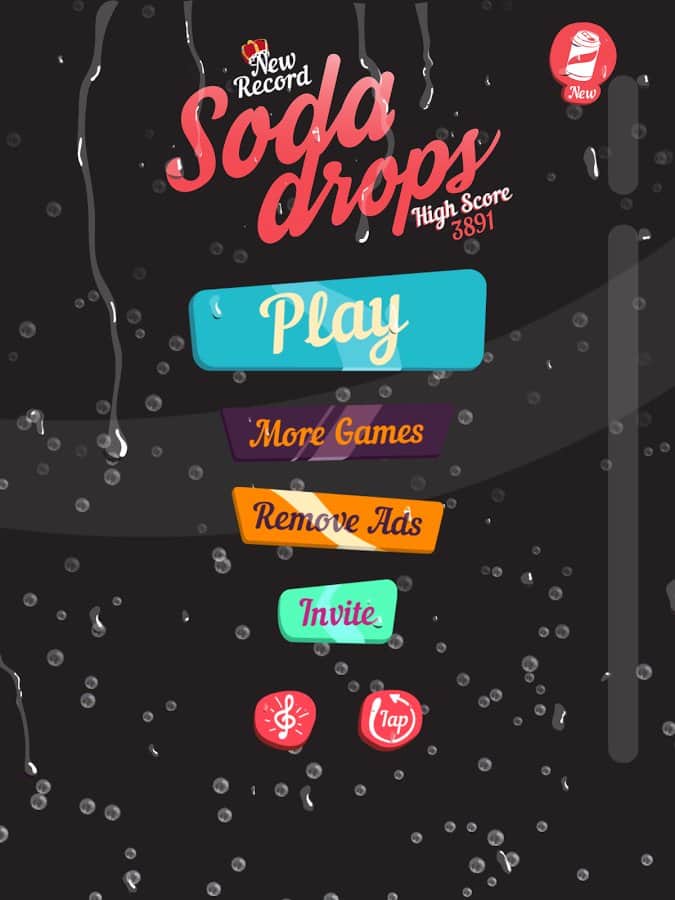 Soda Drops – казуальная игра на андроид, в которой вам предстоит ловить капельки газировки. Эта яркая и динамичная игра, где вам предстоит ловить капельки газировки, не давая им смешивать вкусы между собой. По ходу игры собирайте одинаковые капельки и получайте за это кубики льда. Чем больше у вас будет кубиков, тем быстрее вы сможете проделать мега комбо удар и уничтожить все капельки. Цель в этой игре заключается в том, что вам необходимо открыть все специальные банки с газировкой представление в этой игре. В игре также представлена мини-игра под названием содовая рулетка, которая будет служить для вас дополнительным бонусом. Играйте и наслаждайтесь этой игрой с ее красивой графикой и приятной музыкой.