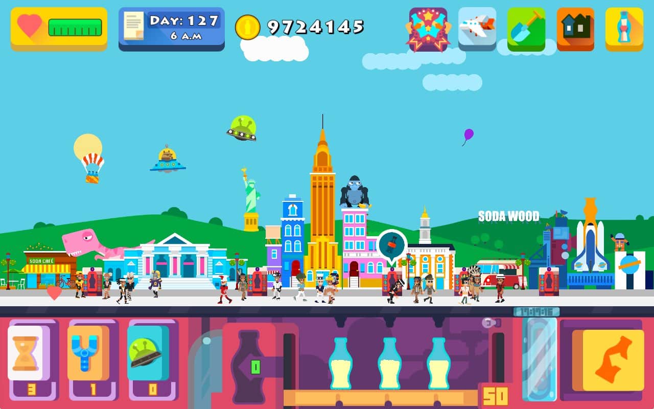 Soda World - Your Soda Inc - увлекательная аркада буквально покорившая миллионы игроков на платформе iOS. И вот пришло время и для обладателей устройств на Андроид. И так, как не трудно догадаться из названия игры вам предстоит заняться производством содовой, популярного прохладительного напитка. Для начала в вашем распоряжении будет лишь классический рецепт и ограниченная база для производства. Но по мере развития вы сами сможете создавать уникальные рецептуры, а так же заметно расширите площади производства. Не стоит забывать и о рекламных акциях, а так же о способах распространения продукции. Игровая механика Soda World - Your Soda Inc сочетает в себе элементы аркады, кликера и симулятора.