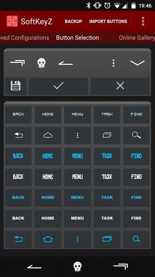 SoftKeyZ от разработчика Янис Elfert. Возможно, вы давно искали такую программу для своего андрид устройства, с помощью которой можно настроить по своему вкусу и настроению функциональные и навигационные кнопки. SoftKeyZ предложит вам более 150 скинов таких кнопок, ну а если вы не нашли то что вам подходит, есть возможность импорта желаемого скина. При необходимости можно вернуть изначальный вид кнопок, нажав «Apply Backup».