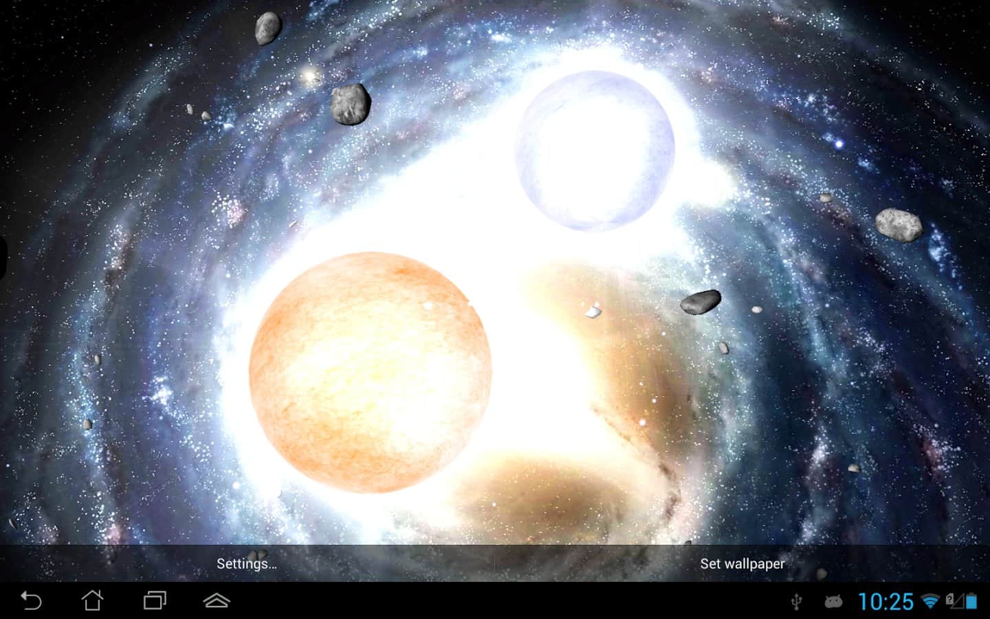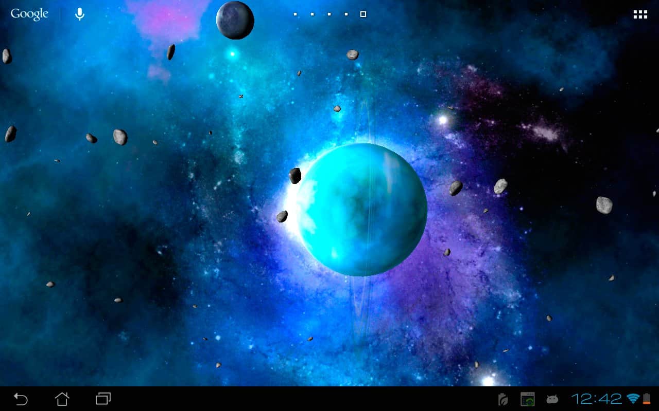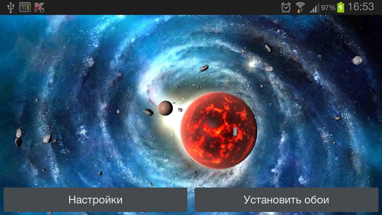 Solar System HD Deluxe Edition – весьма впечатляющие живые обои для андроид от Mozg Labs. Выглядят очень реалистично. Графика отпадная, если не обращать внимание на некоторые неточности, то все просто супер! Так же стоит упомянуть о том, что эти живые обои хорошо кушают батарею, но это мелочи по сравнению с их красотой. Вы даже себе и представить не могли, что в ваше устройство может вместить в себя всю вселенную.