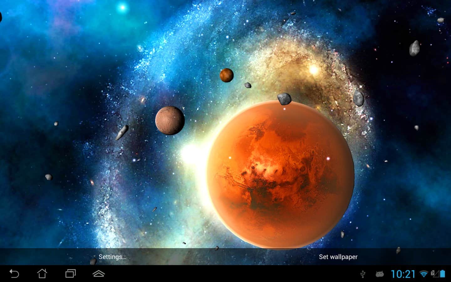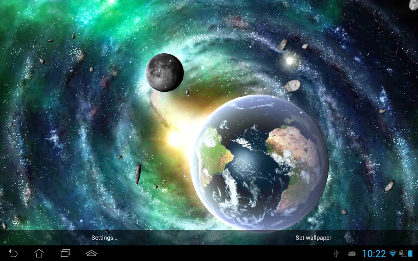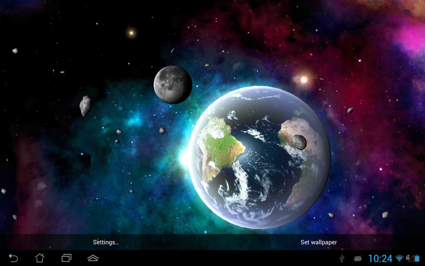 Solar System HD Deluxe Edition – весьма впечатляющие живые обои для андроид от Mozg Labs. Выглядят очень реалистично. Графика отпадная, если не обращать внимание на некоторые неточности, то все просто супер! Так же стоит упомянуть о том, что эти живые обои хорошо кушают батарею, но это мелочи по сравнению с их красотой. Вы даже себе и представить не могли, что в ваше устройство может вместить в себя всю вселенную.