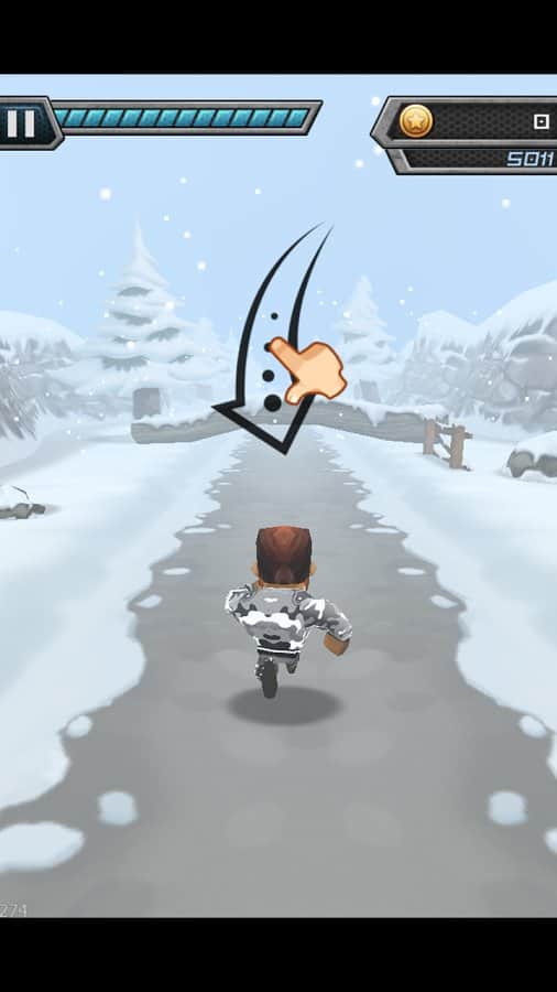 SoldierRun - Ничем не примечательный раннер на андроид. Если только его герои. В игре собраны персонажи самых всевозможных направлений, от обычного солдата, до футбольного игрока, или героя комиксов – Железного человека. А бегать вам предстоит по снежным просторам в лютый мороз. Управление в игре стандартное: влево, вправо, прыжок, и подкат. Графика в игре тоже непримечательна.