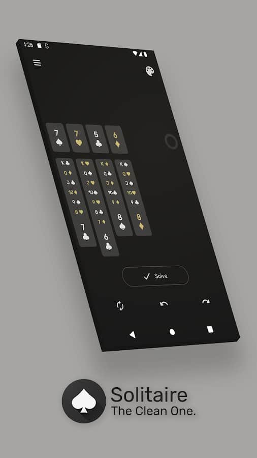 Solitaire - The Clean One - Получайте удовольствие от классической игры в одиночку и улучшайте собственные навыки в игре! Благодаря удобному интерфейсу и анимированным картам, вы не захотите прекращать игру даже после многочисленных пройденных уровней. Используйте логику и стратегию, чтобы выиграть игру, вытягивая по 1 или 3 карты каждый раунд. Благодаря плавным анимациям, минималистичному интерфейсу и различным темам вы сможете максимально разнообразить каждую игру. При желании можно всегда отменять свой ход или сделать повтор.