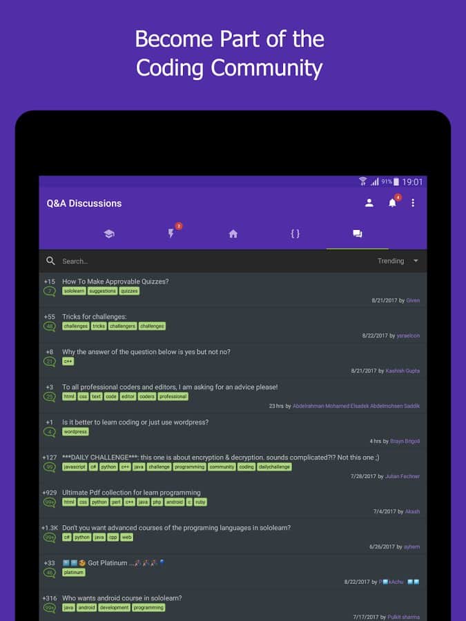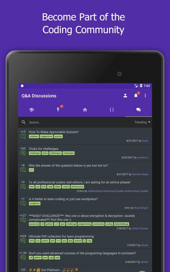 SoloLearn: Learn to Code - Всегда мечтали научится программированию? Хотите стать одним из лучших кодеров в мире, но как обычно это бывает не знаете с чего начать? Это приложение станет вашим персональным учителем в мире программирования. Оно поможет вам не только понять и освоить основы, но так же позволит вспомнить все основные правила даже тем кто уже давно занимается этим. Здесь собрана целая куча известных языков, и вы можете начать любой курс, или же сразу несколько если верите в свои силы.