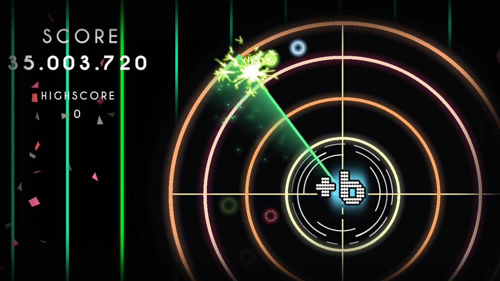 Sonar Beat - музыкальная ритм аркада создатели которой пошли довольно оригинальным путем и представили привычный игровой процесс в необычном стиле. И так, действия игры разворачиваются на авиационном радаре, вам же предстоит при помощи луча слежения обнаруживать ноты которые двигаются по окружностям сетки радара, после обнаружения вам необходимо по средствам тапа уничтожить ноту, если же вы промахнетесь то элемент переместиться на окружность ближе к центру, где и находитесь вы. Как только нота дойдет до центра игра будет окончена.