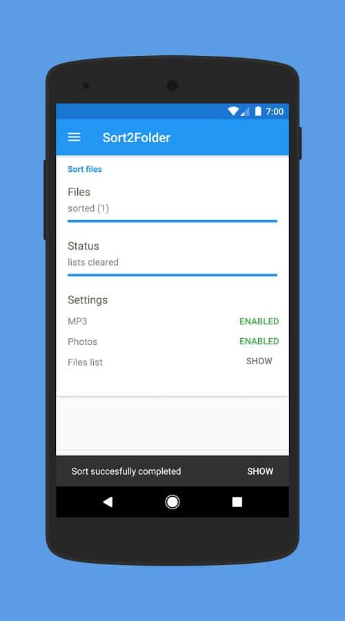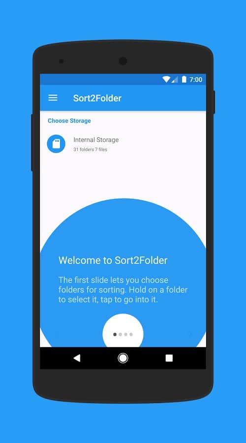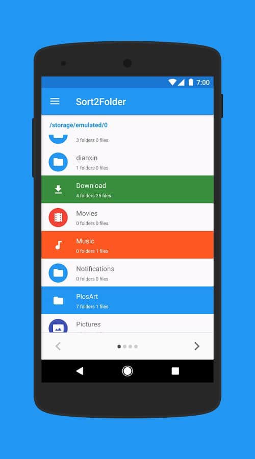 Sort2Folder - Первое приложение созданное для сортировки файлов на вашем устройстве. Это не очистка, а скорее виртуальный помощник, которые поможет вам сохранить чистоту. Современные очистители, удаляют всё подряд, создавая лишь видимость их работы. Это же приложение покажет вам где, и сколько памяти занято, и вы сами сможете решить какие файлы удалить, а какие оставить.