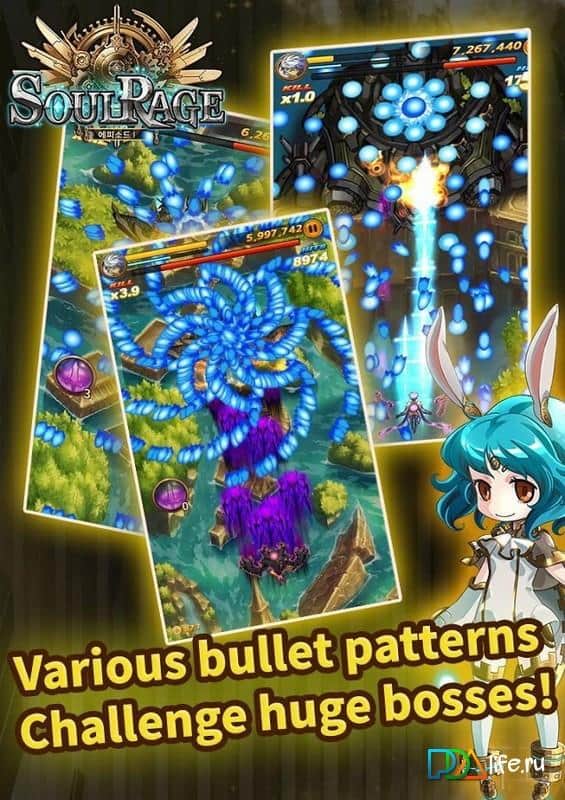 Soul Rage – управляйте летающими героями и прокладывайте себе путь сквозь орды монстров и врагов. В этой игре вы будете управлять героями, которые используют мощную магию и дополнительные способности, чтобы уничтожить врагов на лету. Каждый герой в этой игре обладает своим набором навыков, которые вы сможете улучшать по ходу игры. Кроме всего этого вы сможете получить специальную карточку с дополнительным оружием, которое поможет вам в борьбе против мощных боссов и группы врагов.