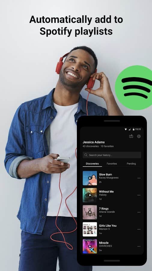 SoundHound - отличная программа для поиска музыки по отрывку на Андроид. Кроме своей основной функции, приложение находит текст песни, информацию об исполнителе, альбомах, популярных композициях того же автора и список похожих групп. Понравившимся треком можно поделиться с друзьями через электронную почту, Facebook или Twitter. Если возможности подключиться к интернету нет, программа сохраняет полученный отрывок и позволяет вернуться к нему позже.