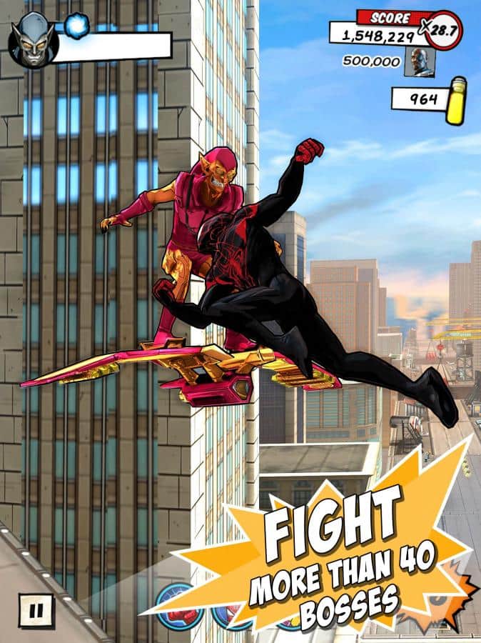 Совершенный Человек-Паук - увлекательный раннер разработанный студией «Gameloft» в котором вы можете поиграть на всем известного героя комиксов Marvel – Человека-Паука. В игре вас ждёт встреча даже с женщиной-пауком. Бегаем по огромному мегаполису, собираем бонус и монетки и сражаемся с различными врагами в пяти частях Манхэттена. С помощью паутины мы можем быстро перемещаться из одного места в другое. Так-же в игре большое количество боссов, которые с удовольствием вас отметелят). На протяжении 25 уровней вы будете сражаться со злом. Открывайте новых персонажей и очистите город от всех бандитов.