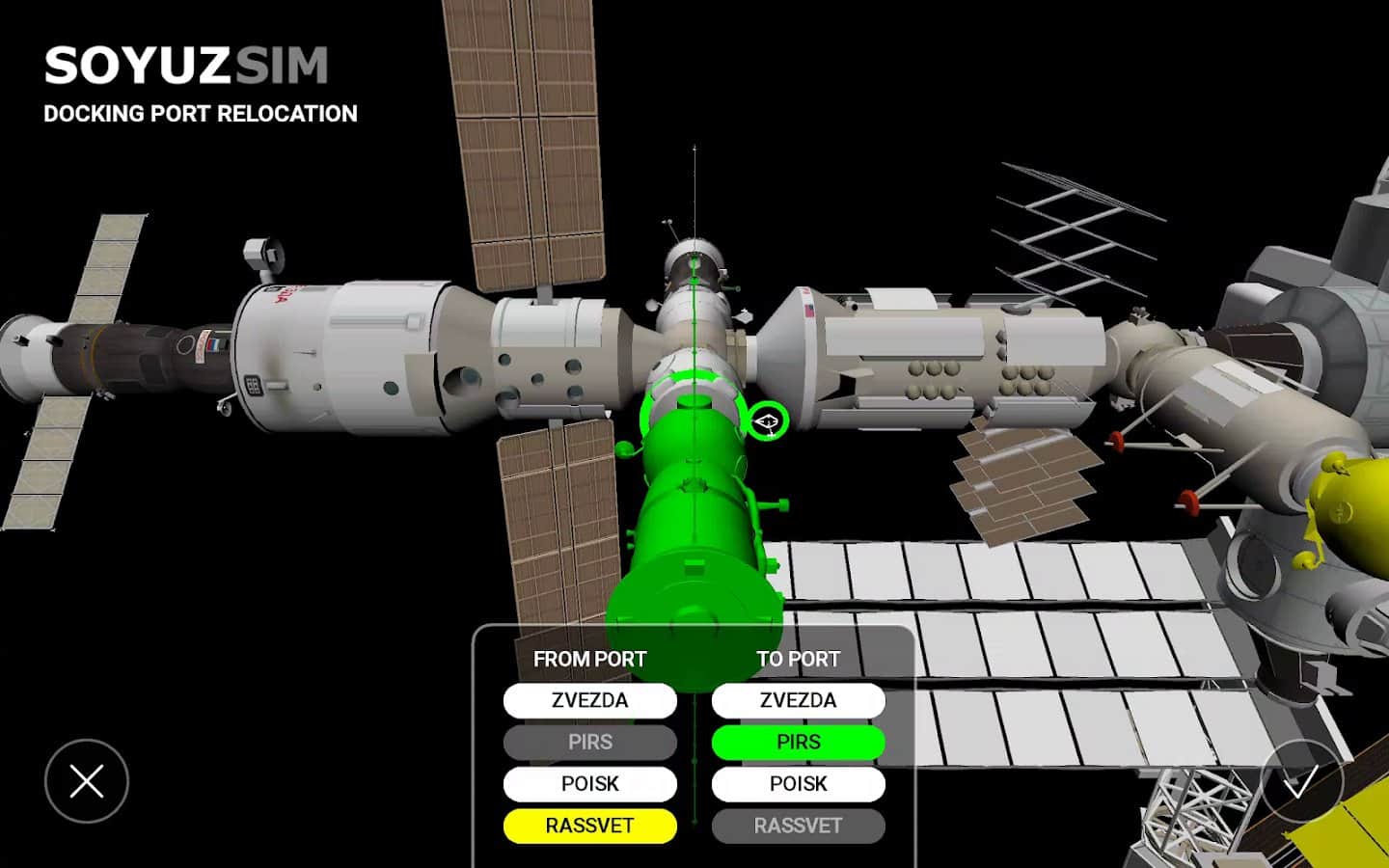 SoyuzSim - Train like a cosmonaut – реалистичный симулятор на андроид, где вы будете управлять легендарным кораблем «Союз». В этой игре вам выпадет отличная возможность взять на себя контроль кораблем «Союз» во время операции по пристыковки его к Международной космической станции. Вручную пилотируйте кораблем «Союз» что позволит вам в точности до сантиметра маневрировать им в космосе. Старайтесь выполнить все миссии и задания игры используя для этого руководство пользователя, которое содержит справочник нужной вам информации. Старайтесь выполнить пристыковку за минимальный промежуток времени, и чтобы она соответствовала всем требованиям.