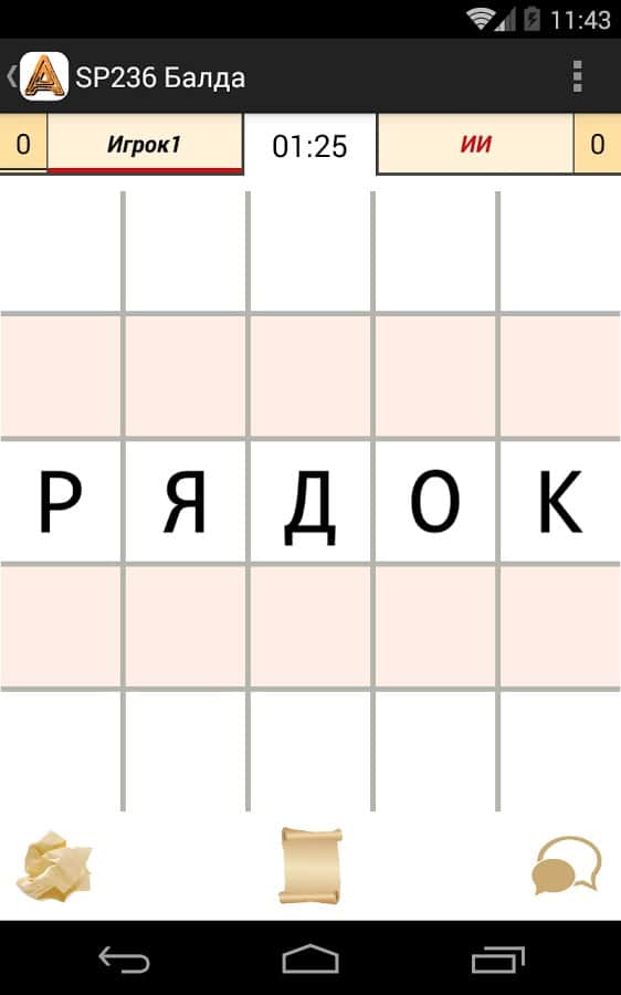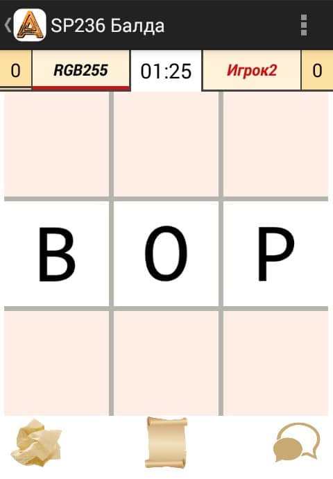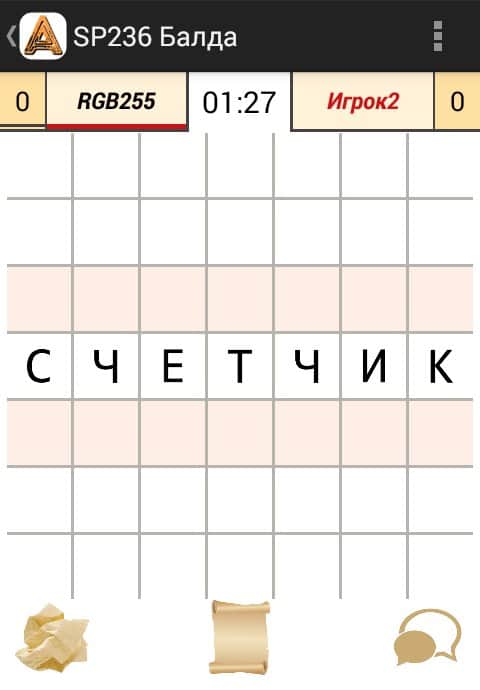 SP236 Балда – логическая настольная игра на андроид, где вашей задачей будет придумывать различные слова. В эту игру вы сможете играть со своими друзьями или другими игроками со всего мира. Перед вами откроется поле из клеточек, один игрок вписывает туда слово и вашей задачей будет вписать свое слово, состоящее из определенного набора букв. Для игры прилагайте всю свою сообразительность и логику для того чтобы как можно быстрее составлять слова из предложенных букв и размещать их на игровом поле. Играйте со своими друзьями на одном устройстве, используя интернет и Bluetooth и общайтесь с ними в строенном чате.