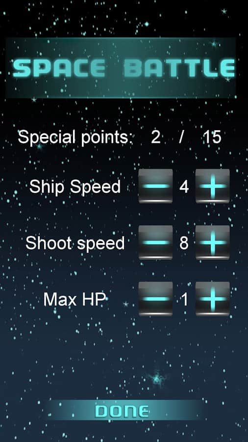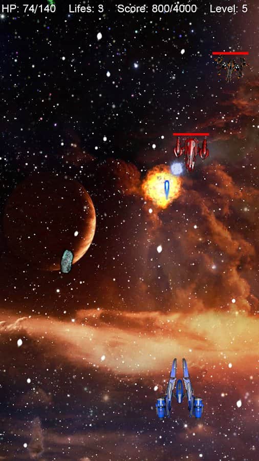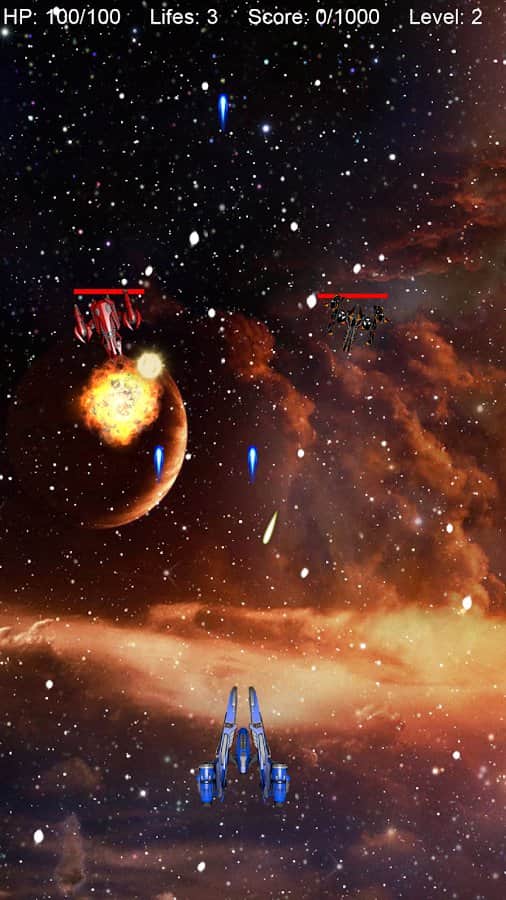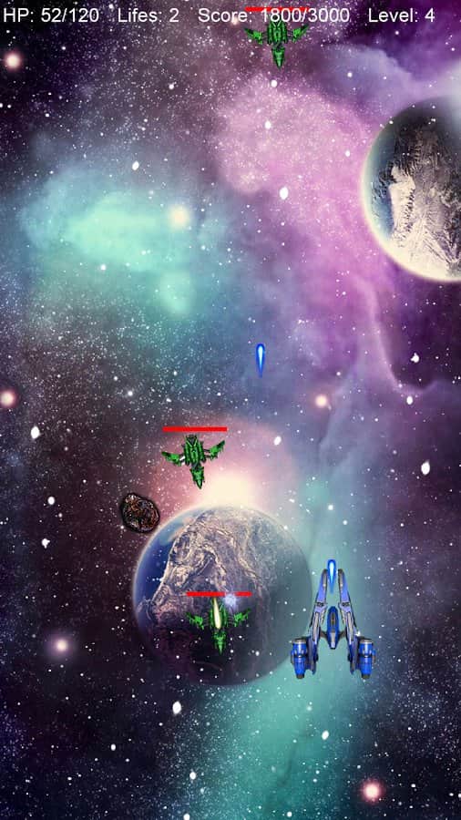 Space Battle – довольно простенький космический скролл-шутер. В котором можно апгрейдить свой корабль и получать различные бонусы помогающие в борьбе с врагов. Настали тяжёлый времена, на нашу планету хотят вторгнуться космические войска другой цивилизации. Все страны сплотились и построили несколько боевых меж галактических корабля. Которые и вышли на орбиту земли для защиты своей планеты. Одним из таких космических кораблей, мы и будем управлять. Чтобы пройти уровень вам необходимо как можно больше уничижить врагов, за счёт этого вам будут начисляться очки. Набрав необходимое количество очков, мы переходим на следующий уровень.