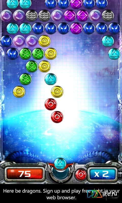 Space Blast - игрушка из жанра 3и в ряд. Вам предстоит выстреливать цветные шарики в верх, в кучу опускающуюся на Вас да так, чтобы получилась кучка шариков одного цвета от 3х и более. То есть задача игры - уничтожить наступающие шарики. За различные комбо или быструю скорость Вам будут начисляться балы, которые в конце каждого уровня складываются и в последствии определяются рекорды и победители.