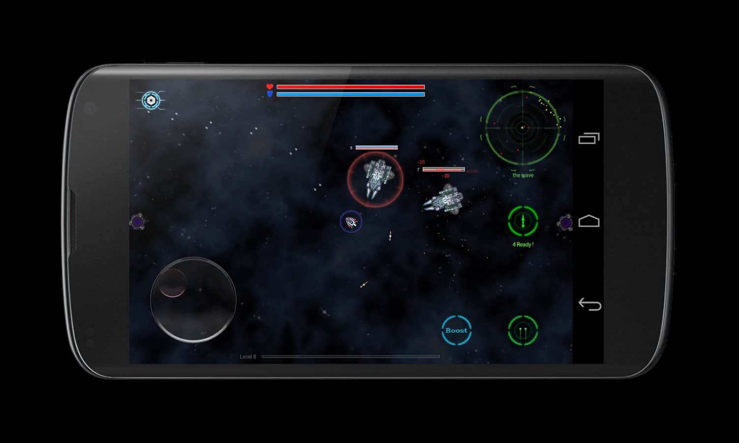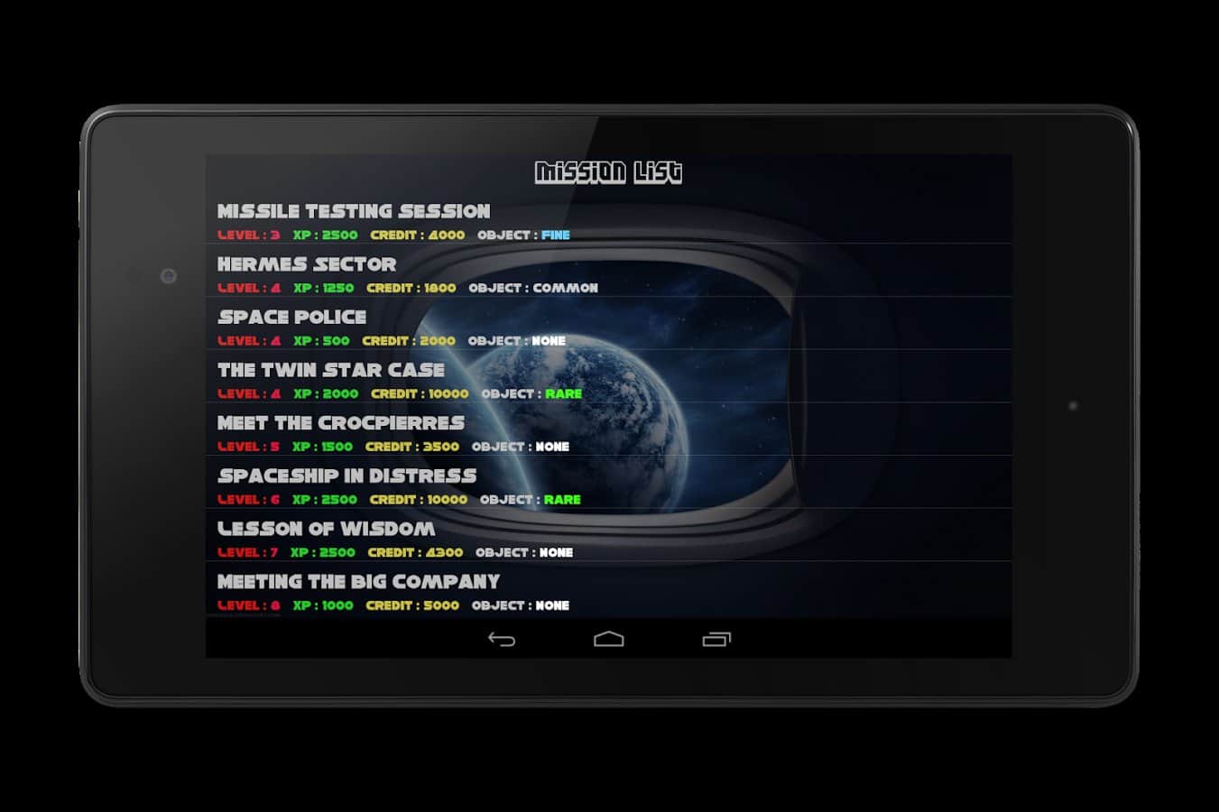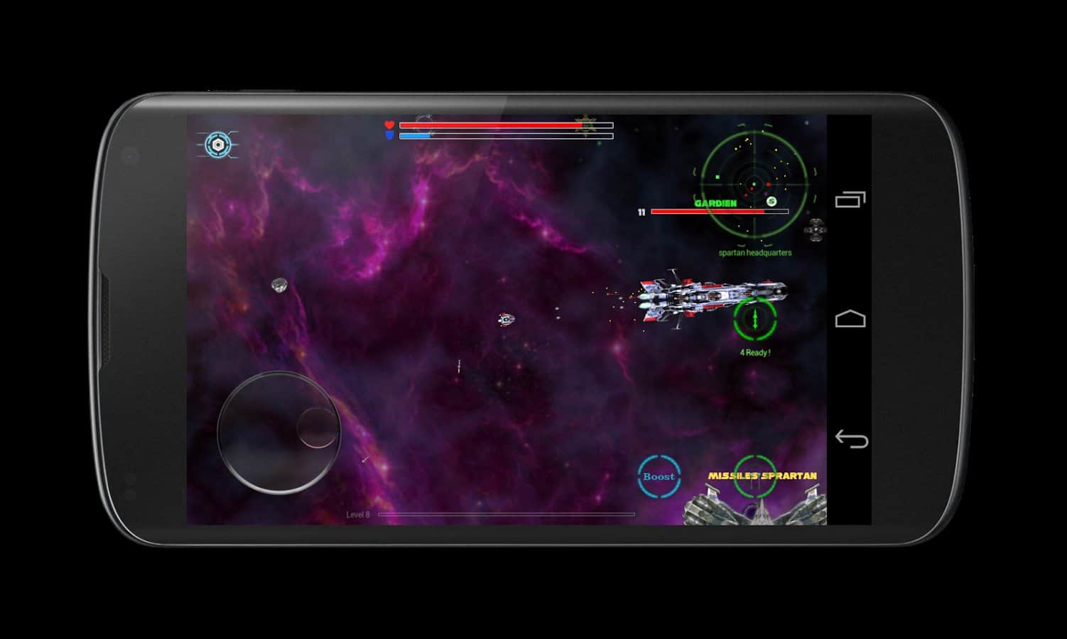 Space corsair - игра на андроид, в которой вам предстоит управлять космическим кораблём, Который оборудован вооружением и оборудованием, таким как: лазер, ракеты, щит, прыжок. Вас будут направлять на выполнение различных миссий, в одних из них вам предстоит разбивать метеориты, которые могут угрожать вам, в других просто уничтожать вражеские корабли неприятеля.