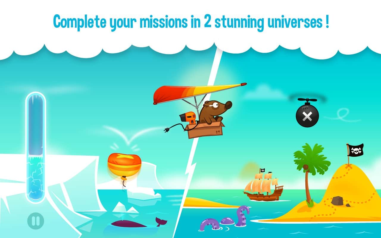 Space Dog Journey – увлекательное путешествие вместе с псом Space Dog и его приятелем Цыпой. Наш пес фантазер и как только он решили вздремнуть во сне ему привиделось что он управляет выдуманным летательным аппаратом и избегает препятствия на своем пути. Помогите нашему герою собрать многочисленные бонусы и управлять летательным аппаратом так, чтобы не столкнуться с препятствиями. Выполните все поставленные перед вами миссии и завершите их мягкой посадкой на землю с пружинив на Цыпе. Откройте для себя более 30 уровней и невероятное количество летательных аппаратов, а также не забывайте крутить колесо фортуны и выигрывать бонусы.