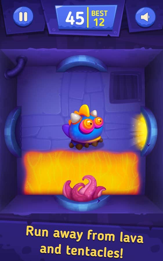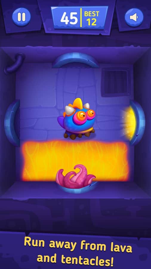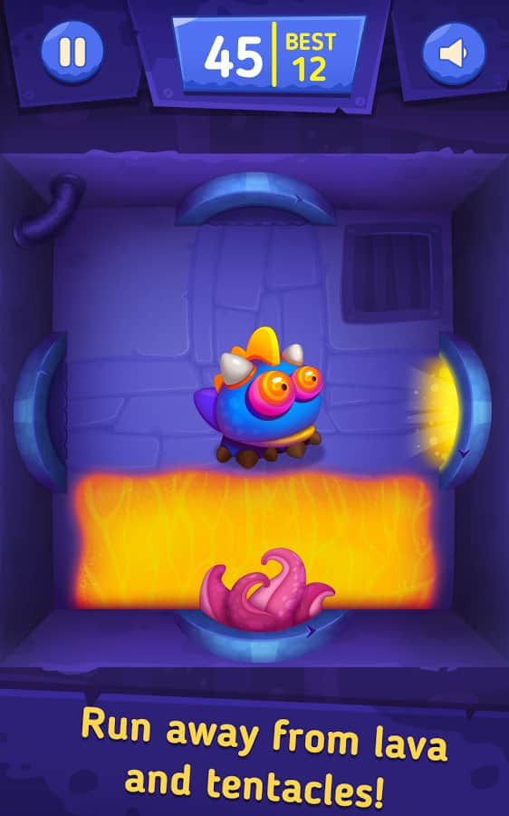 Space Dragons Escape – управляйте движением дракончика и уберегите его от приближающейся лавы. Ваш дракончик попал в сеть комнат, где на него с одной стороны приближается лава, а с другой ужасные щупальцы. В этой игре вашей главной задачей будет помочь герою переместиться в нужную дверь и попасть в другую комнату и так по кругу. Выбирайте правильную дверь, обходя все препятствия и тренируя свою реакцию. Когда лава появиться в комнате у вас будет только несколько секунд на принятие правильного решения. Проходите с успехом уровни и получайте в награду умения, которые вы сможете потратить на покупку забавных костюмов для героя.