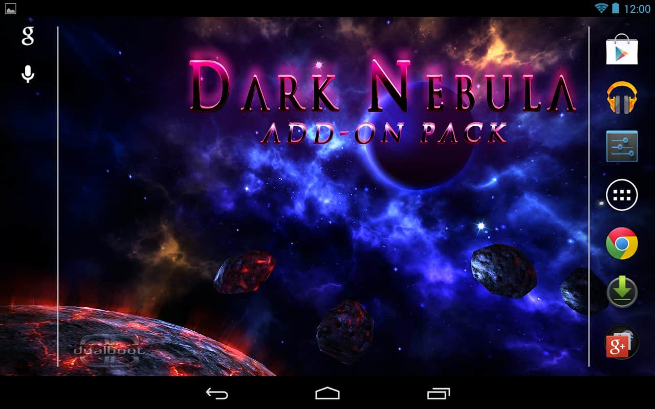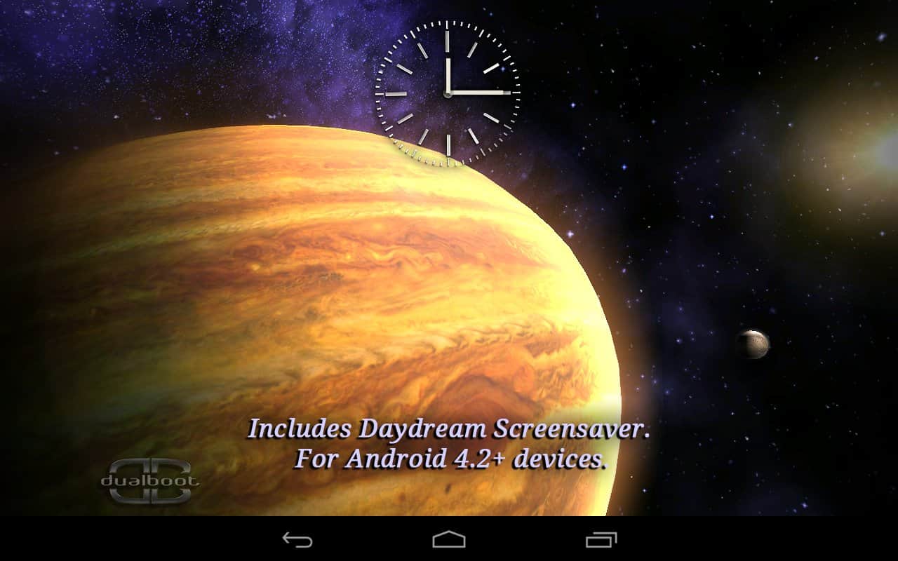 Space HD – потрясающие 3D живые обои с космической темой и великолепной графикой для андроид устройств от разработчика DualBoot Games. Путешествовать в пределах нашей галактики теперь просто как никогда, достаточно скачать и установить данные обои на экран своего устройства. Плавная камера со скоростью света облетит всю Солнечную систему и продемонстрирует все величие Космоса. Приятных путешествий!