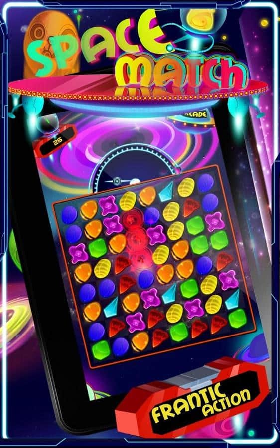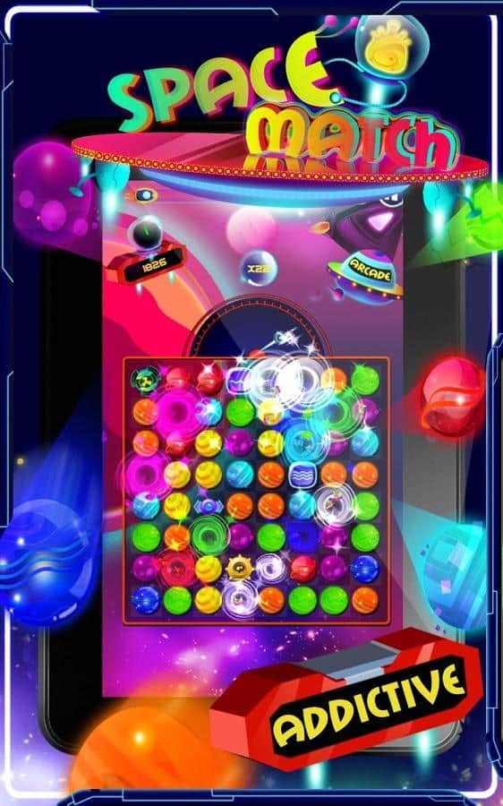 Space Match Deluxe - игра на андроид, в которой вам предстоит проверить свою реакцию и ловкость в этой захватывающей космической игре из жанра 3 в ряд. Вас ждут три различные режимы такие как: аркада, оценка паники и Zen. Используйте различные бонусы чтобы пройти через все разнообразные уровни и собрать максимальное количество баллов. Играйте со своими друзьями через Facebook и займите самые верхние строчки в таблице лидеров.
