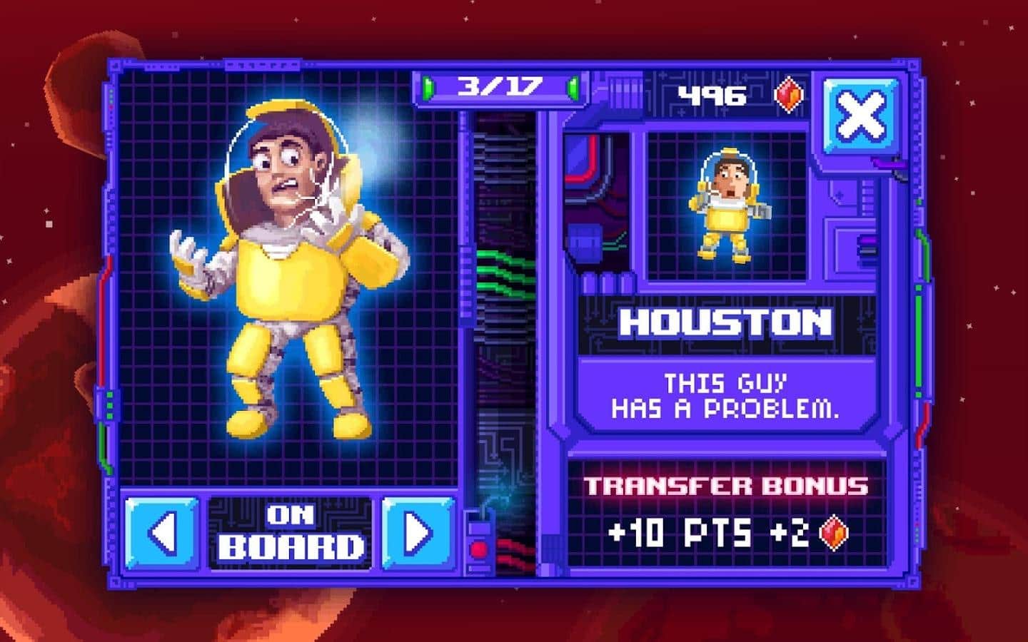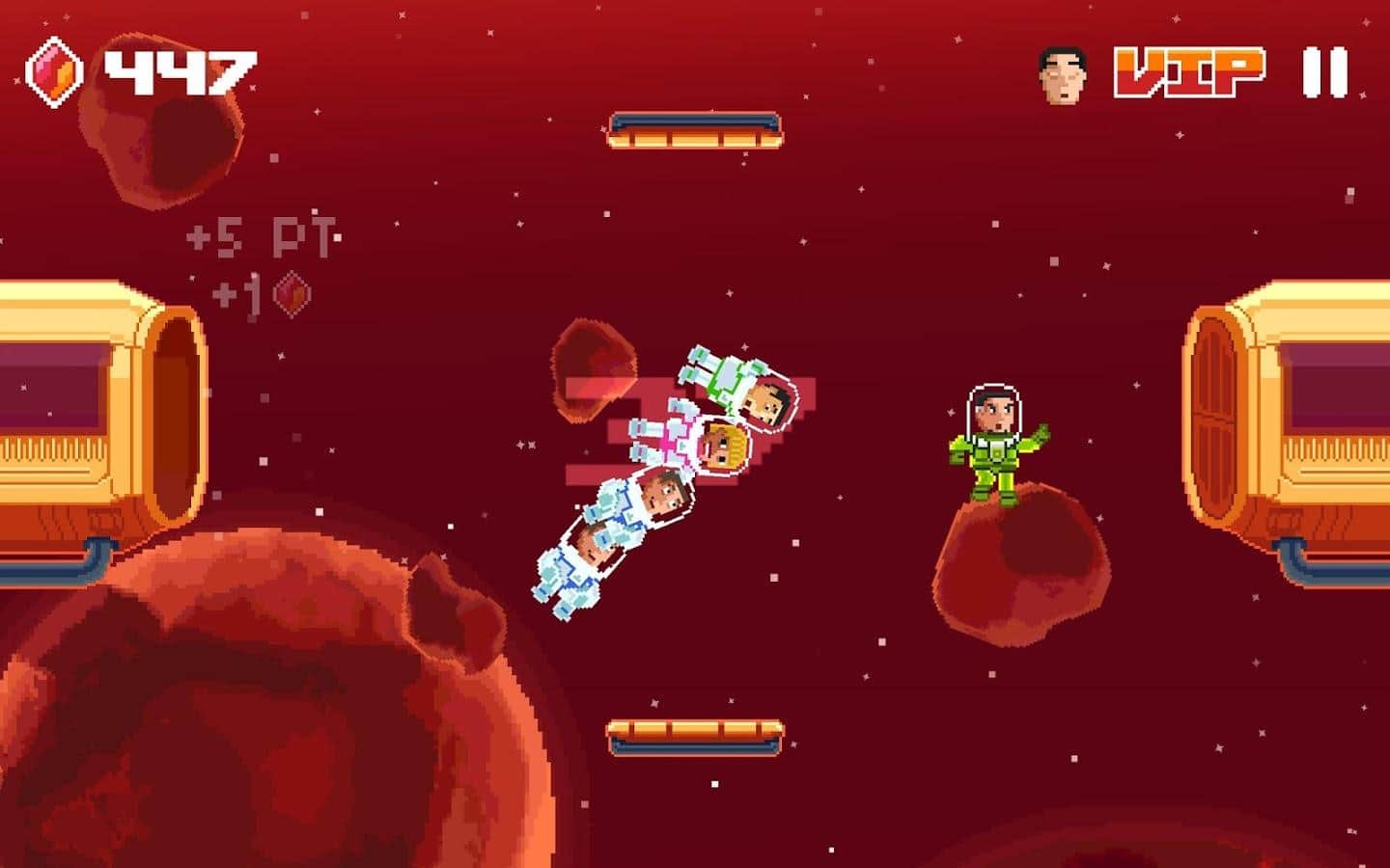 Space Transfer - Увлекательная аркада, в которой вы будете помогать космонавтам, перебираться с одного корабля на другой. Для этого, вы будете перемещать две платформы, и не давать космонавтам улететь в открытый космос. Игра очень простая, однако требует хорошей концентрации, а так же реакции. Некоторые из космонавтов, могут менять направление прямо на лету, так что вам придется изрядно постараться, что бы не пропустить их. Так же, через некоторое время, вам придется переправлять вип клиента. За него вы будете получать бонусные очки, однако и поймать его будет немного сложнее.