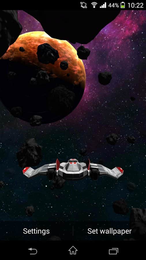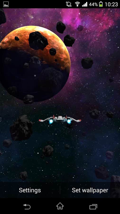 Space Travel Live Wallpaper - Мечтали побывать капитаном космического корабля? Ваша мечта сбылась, путешествуйте по бескрайним просторам космоса, на вашем космическом корабле. Ваш корабль так же, может стрелять лазером, уничтожая астероиды у вас на пути. Благодаря прекрасной графике, и визуальном оформлении, данные обои смотрятся очень красиво. Стоит заметить, что они весьма требовательны к ресурсам вашего устройства, но бесспорно, они того стоят. Так чего же вы ждете, качайте, устанавливайте, и начинайте исследовать космос, сидя дома, или на работе.