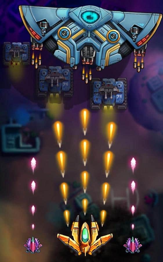 Space X : Galaxy War – скролл-шутер на андроид, где вы будете управлять самолетами будущего. Примите свое участие в этой динамичной стрелялке и проведите незабываемые часы играя в эту игру. Летайте над красивыми и разнообразными локациями игры и выполняйте иммерсивные миссии, которые полностью погрузят вас в игру. Откройте для себя все три самолета, каждый из которых обладает уникальными особенностями и стилем игры. Летайте по бесконечным локациям и вступайте в бой с сильными боссами, которых не так просто будет победить. Участвуйте в новых еженедельных турнирах и соревнуйтесь с другими игроками.