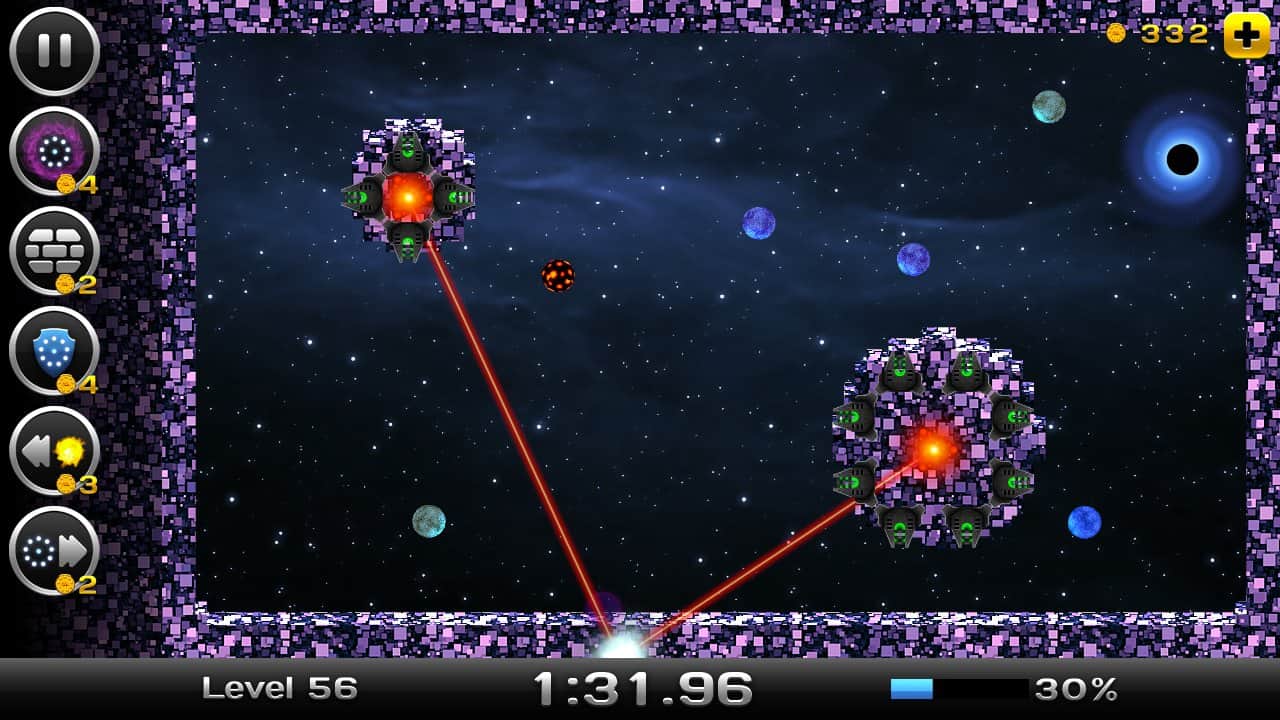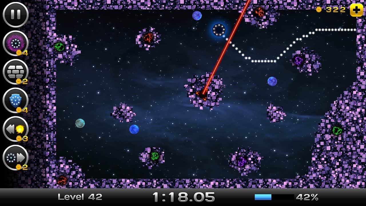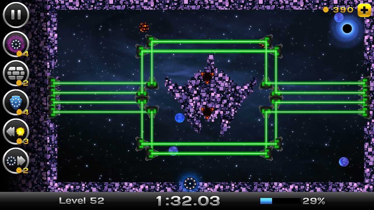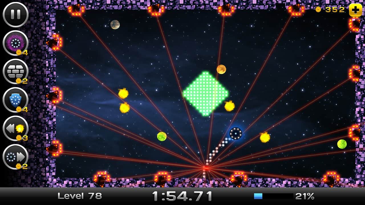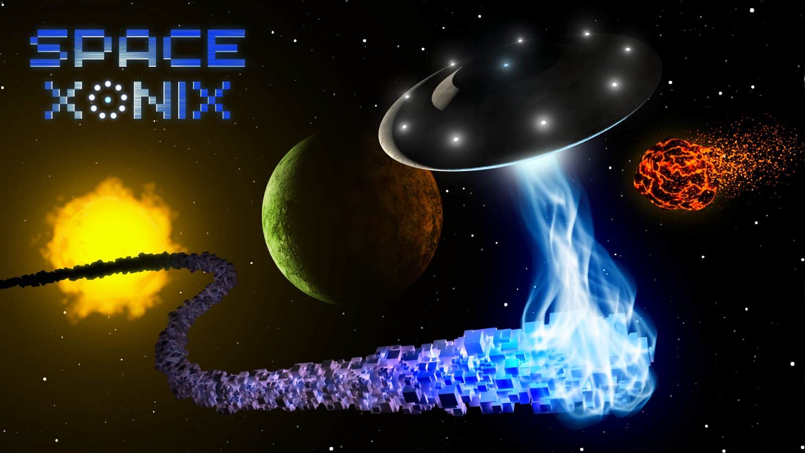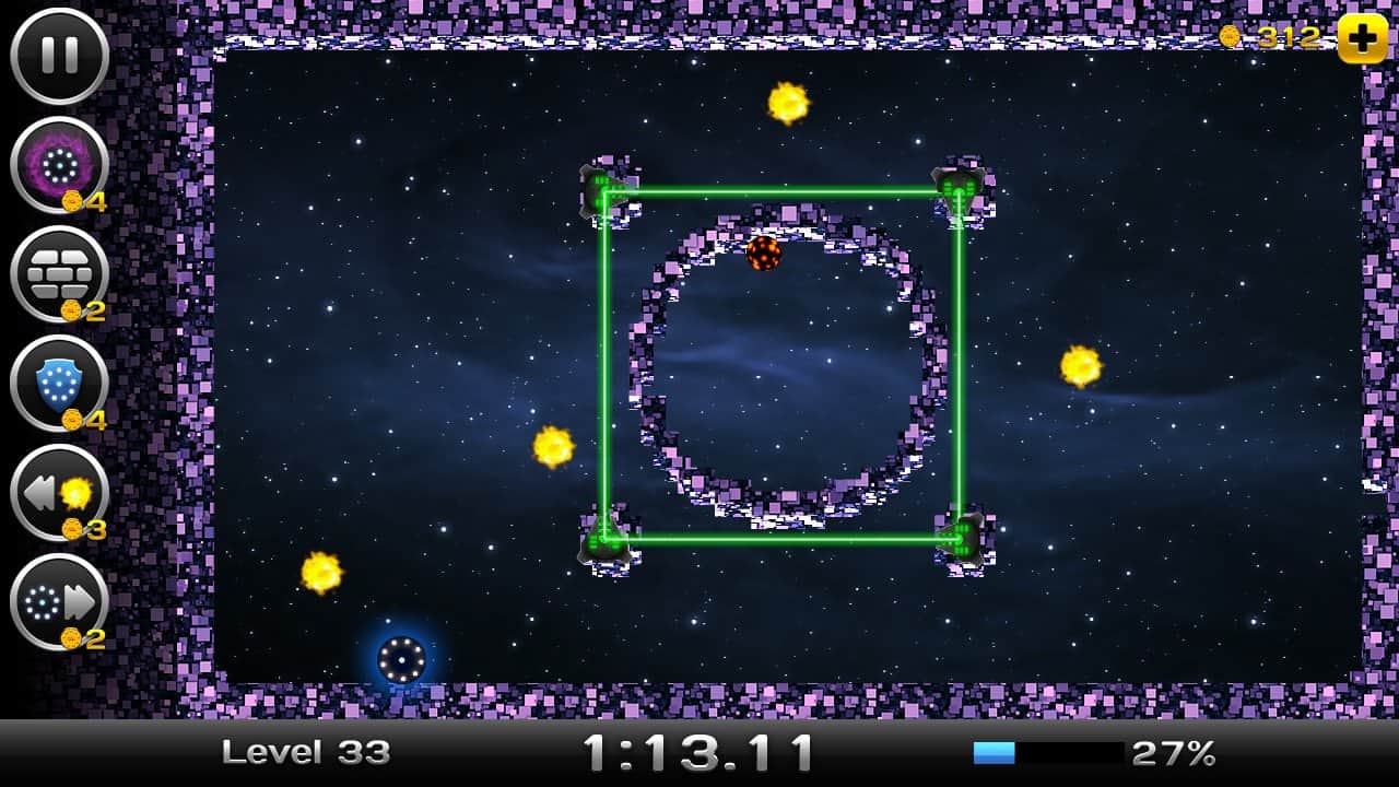 Space Xonix - игра на андроид, в которой вы будете управлять летающей тарелкой, и завоевывать космическое пространство. Рисуйте траекторию движения вашей тарелки с помощью своего пальца так чтобы собрать как можно больше свободных кусков вселенной. Но остерегайтесь движущихся частиц при столкновении, с которыми вы можете взорваться. В вашей работе по завоеванию вселенной вам помогут бонусы, которые можно выиграть в лотерее прямо в игре или приобрести их. В игре есть несколько режимов и один из них корпоративный в котором вы сможете играть со своими друзьями на одном устройстве.