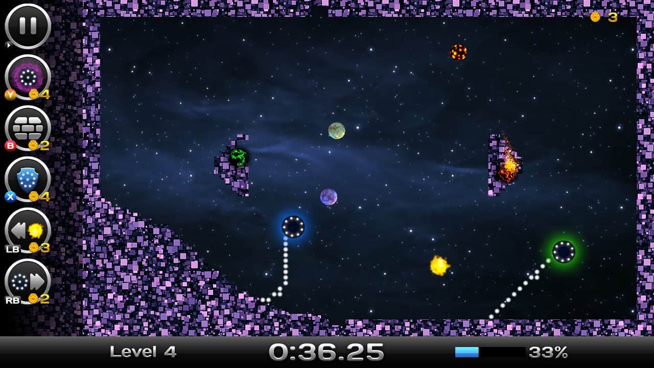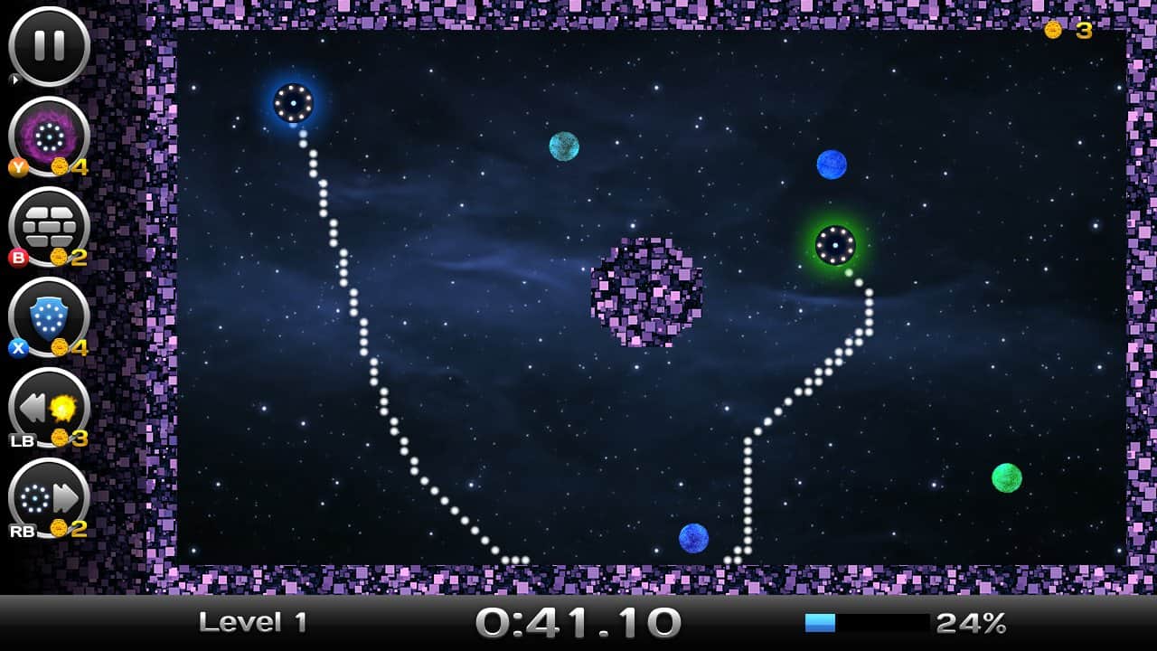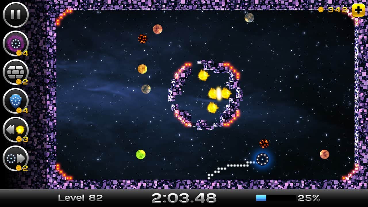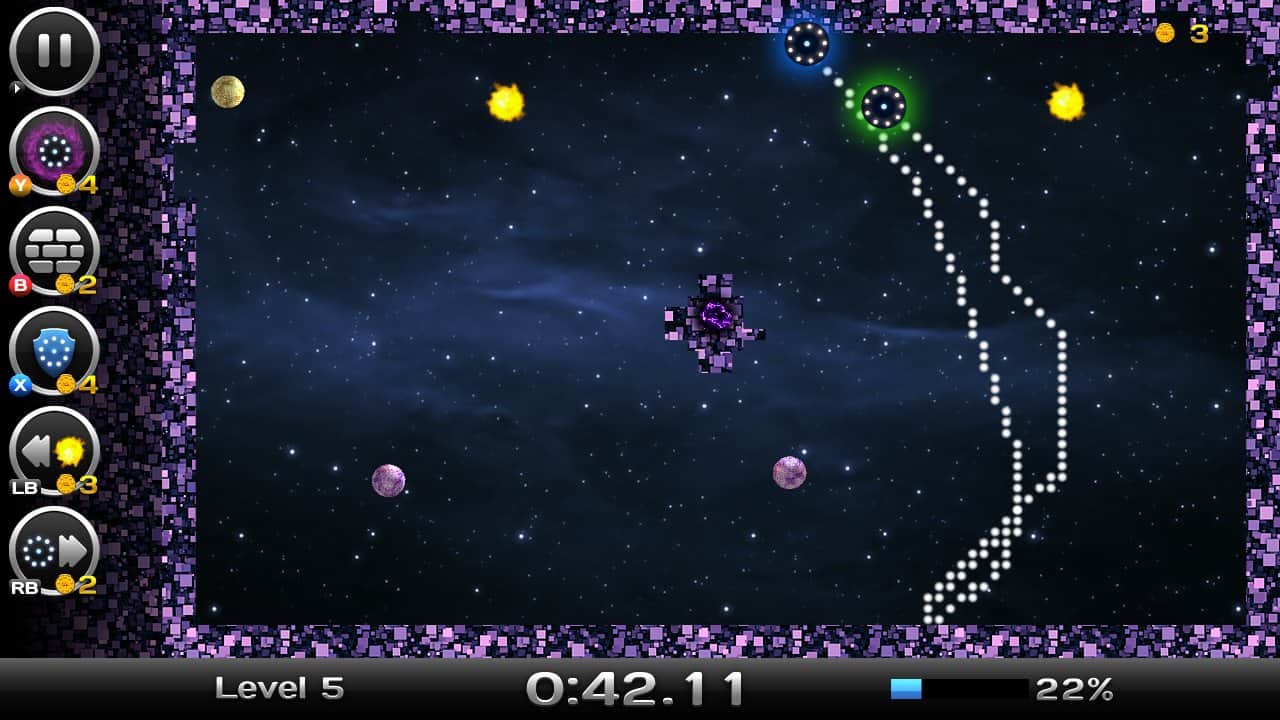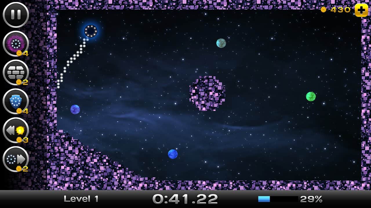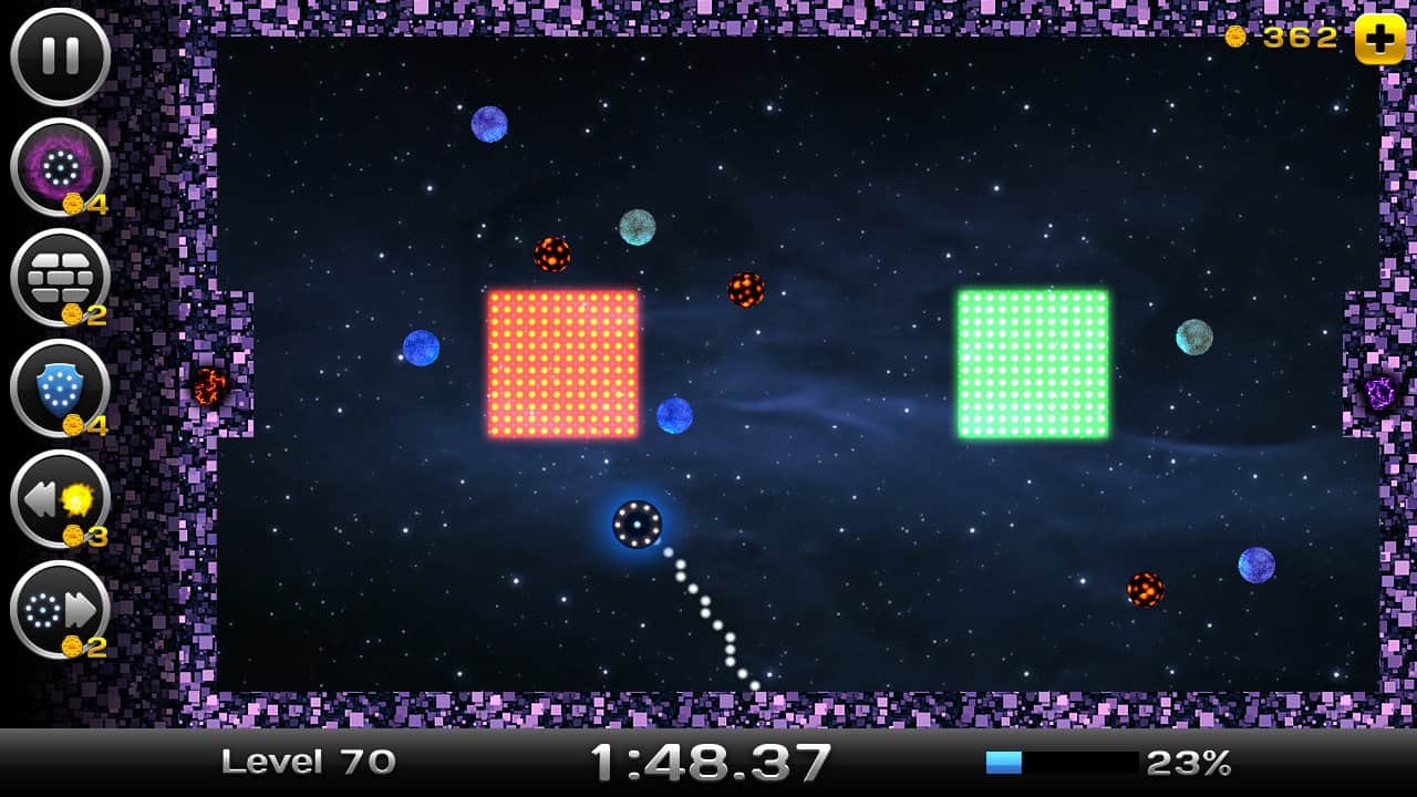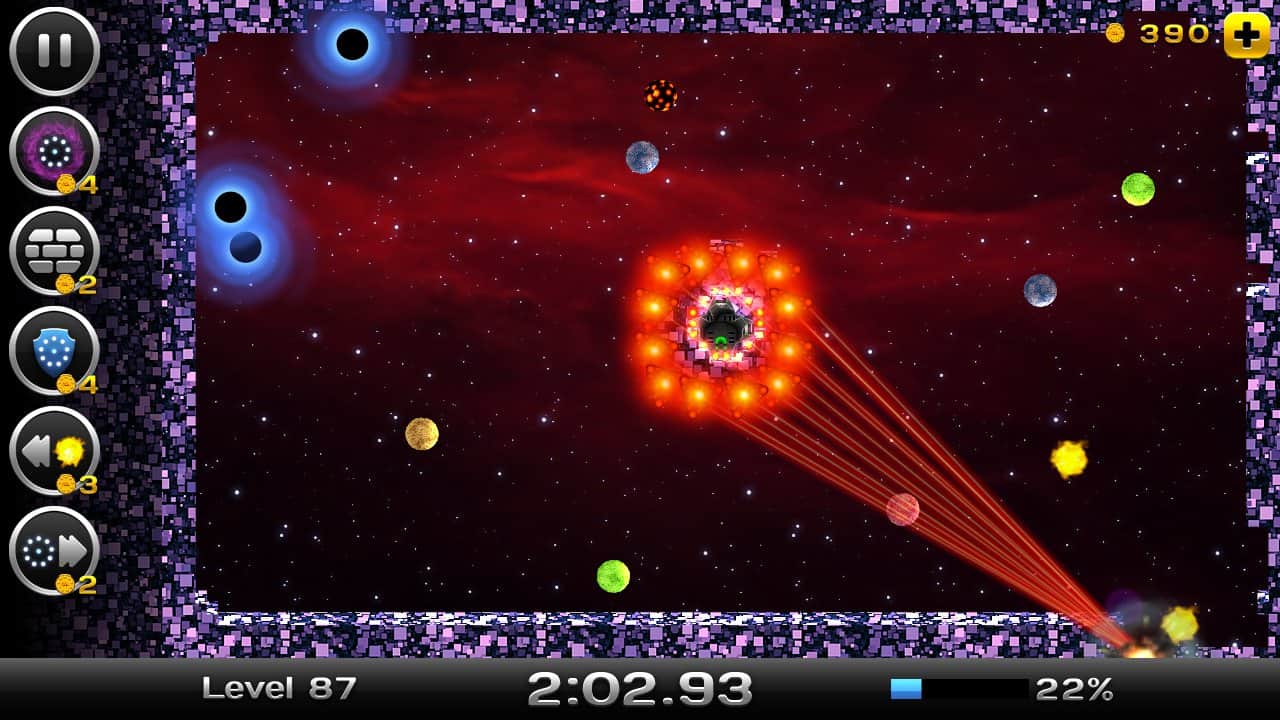 Space Xonix - игра на андроид, в которой вы будете управлять летающей тарелкой, и завоевывать космическое пространство. Рисуйте траекторию движения вашей тарелки с помощью своего пальца так чтобы собрать как можно больше свободных кусков вселенной. Но остерегайтесь движущихся частиц при столкновении, с которыми вы можете взорваться. В вашей работе по завоеванию вселенной вам помогут бонусы, которые можно выиграть в лотерее прямо в игре или приобрести их. В игре есть несколько режимов и один из них корпоративный в котором вы сможете играть со своими друзьями на одном устройстве.
