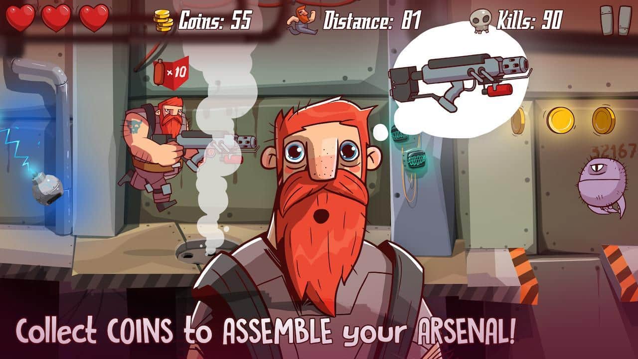 SpaceBeard – аркада на андроид, в которой вам предстоит защитить свой корабль от нападения инопланетных монстров. Вы командир космического корабля, который потерпел крушение на неизвестной планете, где обитают ужасные монстры. Берите в руки оружие и защитите свой корабль от вторжения инопланетян. Бегайте с огнеметом наперевес по разнообразным уровням и старайтесь убить как можно больше монстров и собрать все монеты. Избегайте препятствия встречающиеся у вас на пути и меняйте оружие, стараясь выжить в этом мире. Эта игра потребует от вас быстрой реакции и незамедлительных действий.