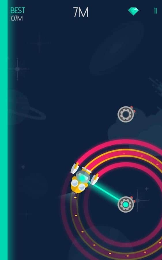 SpaceTapTap – аркада на андроид, где вы будете управлять полетом космического корабля. Запускайте в полет свой корабль и ведите его вперед, обходя стороной все преграды на пути. В космическом пространстве будут находиться шестеренки, вокруг орбит которых вам предстоит летать. Как только ваш корабль приблизится к шестеренке нажимайте на экран и наблюдайте за тем как корабль проходит по ее оси, отпуская палец в нужный момент и ведите корабль дальше. Как только ваш корабль столкнется с преградами, шестеренками или стенами игра для вас начнется заново. Набирайте достаточное количество очков и открывайте для себя новые космические корабли, которые будут обладать уникальным внешним видом.