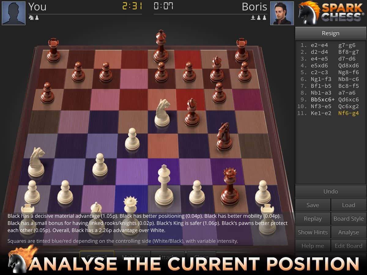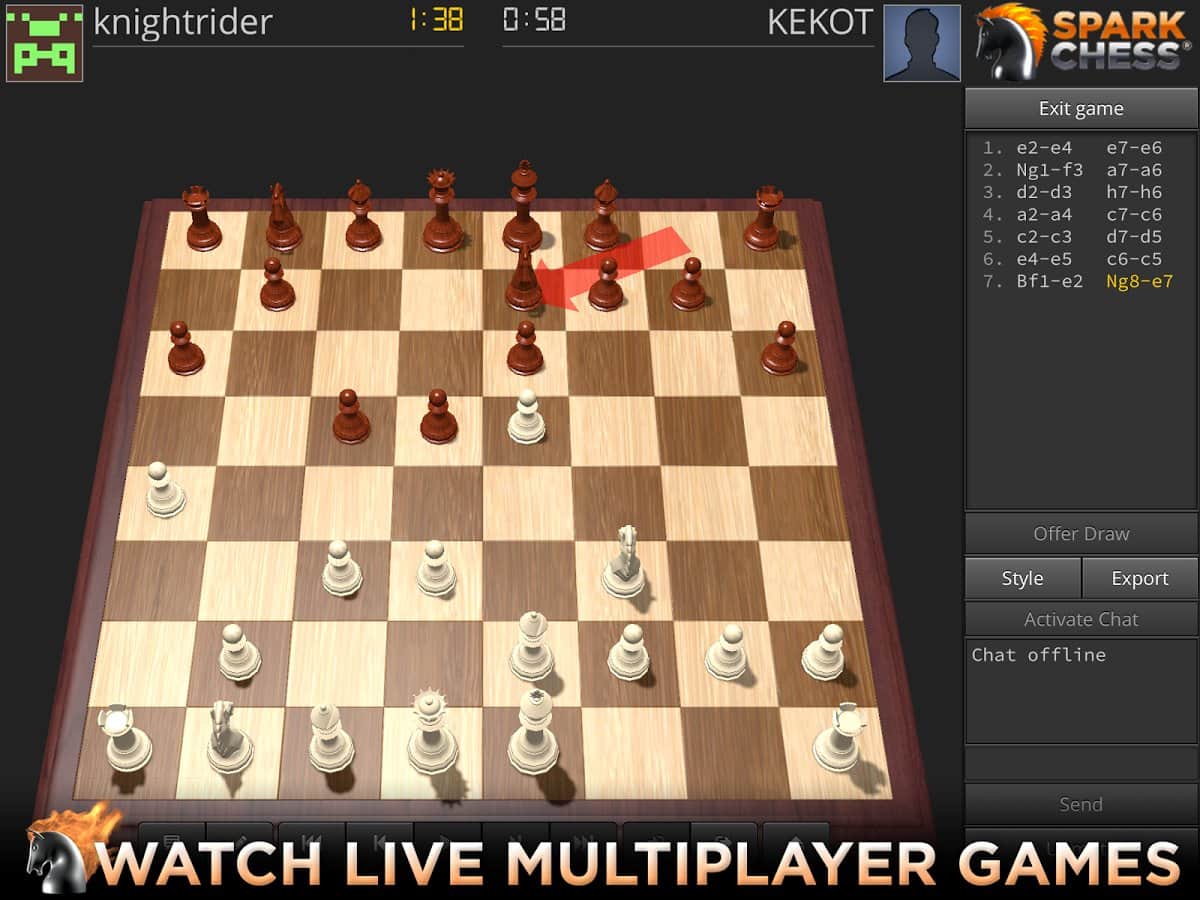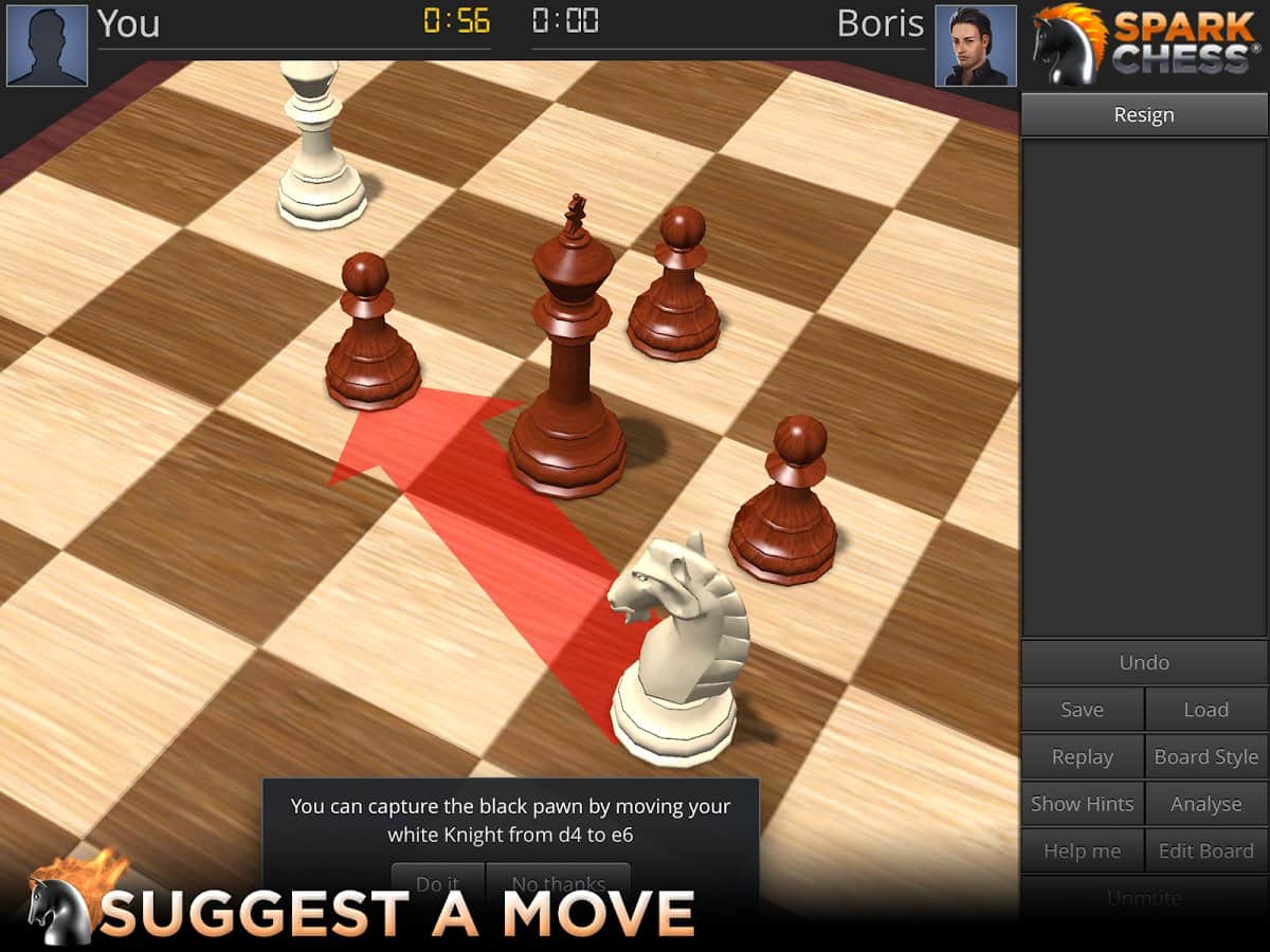 SparkChess HD - один из самых лучших и качественных представителей шахмат для Андроид устройств. Ее создатели постарались не только передать уникальную атмосферу этой игры, но и максимально адаптировать игровой процесс под требования мобильных устройств. Интуитивно понятное управление, возможность играть как в 3D так и в 2D режиме, богатый выбор разнообразных досок и фигур, три режима сложности, прекрасная графика и анимация, полноценный мультиплеер в котором вы сможете сразиться с другими игроками со всего света, а для новичков и тех кто только постигает азы этой игры обширная познавательная и обучающая программа. Для профессионалов разработчики тоже приготовили целый ряд полезных функций и дополнений.