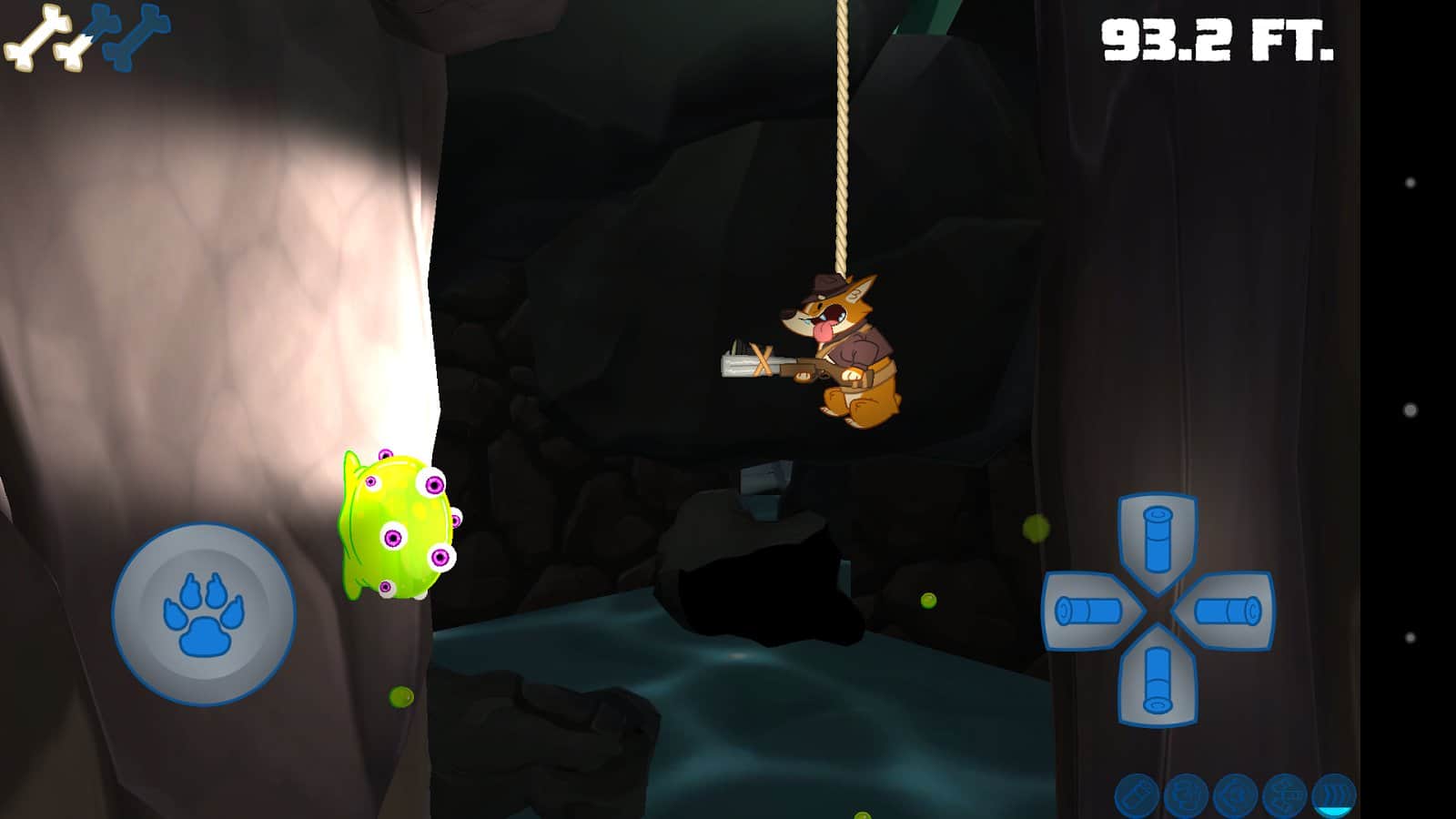Sparkle Corgi Goes Cave Diving – захватывающая игра в которой вы будете управлять псом альпинистом. Вашей задачей в этой игре будет спускаться на канате в бесконечный тоннель, и стрелять из дробовика по зеленой слизи, летучим мышам и гоблинам, встречающимся у вас на пути. Зарабатывайте больше баллов, спускаясь все глубже в тоннель, и постарайтесь разблокировать самый главный приз золотую кость. Игра порадует вас генерирующими уровнями и большим количеством разнообразных врагов. Ваш пес Корги весит на волоске от гибели, не дайте ему упасть в глубокую пещеру и погибнуть.