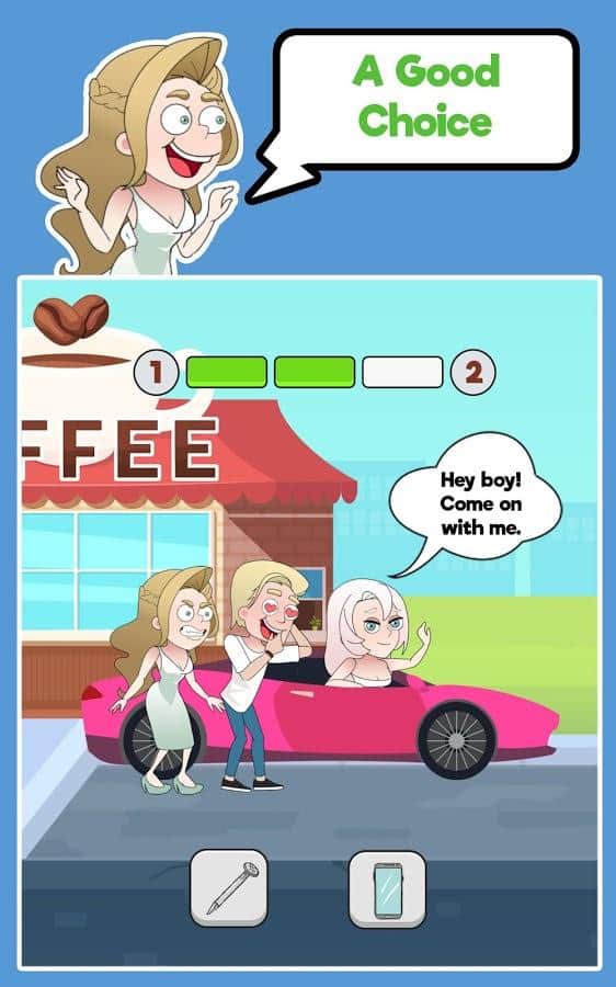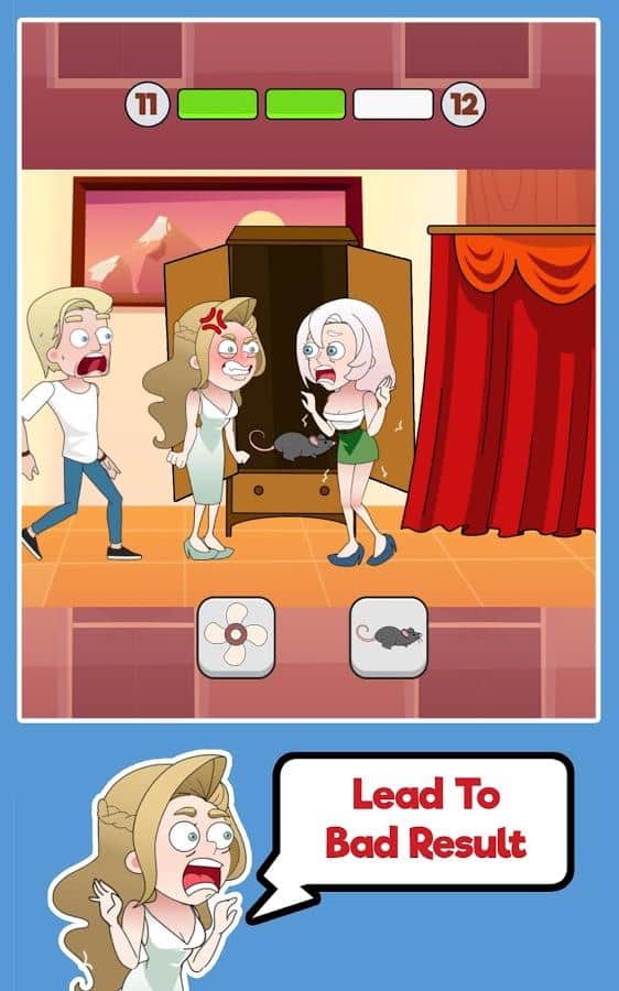 Спасите леди- Девушки иногда бывают настолько наивны, что не замечают очевидные действия прямо под носом. Спасите историю романтической и идеальной любви, которая может обрушиться из-за измен парня. Проходите уровни с забавными и сложными ситуациями, тщательно заметая следы. У вас есть как минимум 3 удачных выбора, не прогадайте, ведь плохой скажется на истории. Взаимодействуйте с разными персонажами, предметами и явлениями в любых локациях, но не попадайтесь. Интересно проведите время, не воспринимайте игру слишком серьезно!