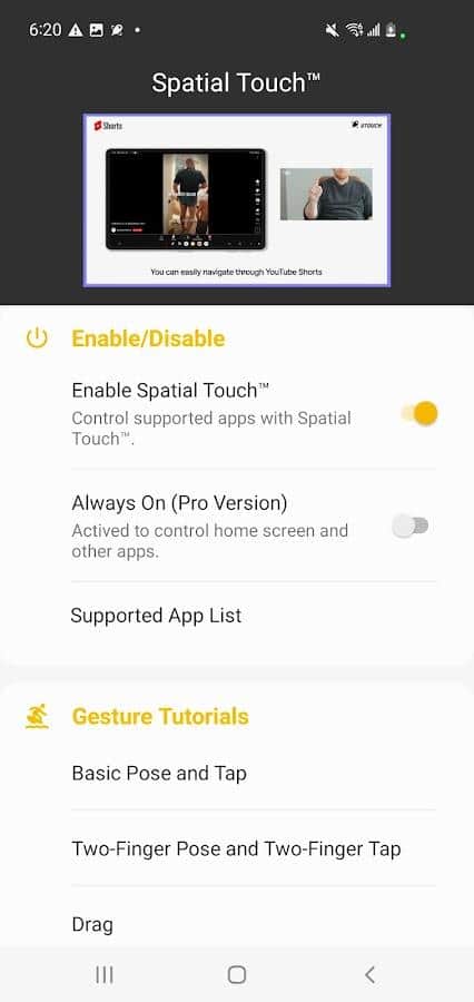 Управляйте своим смартфоном или планшетом без физического касания экрана! Представляем Spatial Touch™ - революционный пульт дистанционного управления, работающий на основе искусственного интеллекта, который дает вам возможность командовать мультимедийными приложениями с помощью жестов, не прикасаясь к устройству. Этот инструмент позволяет без труда управлять такими приложениями, как YouTube, Shorts, Netflix, Disney Plus, Instagram, Reels, TikTok и многими другими, которые могут быть добавлены в список поддерживаемых. Идеален для моментов, когда вы расслаблены, откинувшись на кресло и не желаете подниматься, когда ваши руки заняты или испачканы, например, во время приготовления еды или посудомойки, а также когда вы хотите избежать контакта с экраном, чтобы не заляпать его едой. Spatial Touch™ предлагает удобное и интуитивное управление вашими устройствами в режиме реального времени. Скачайте и ощутите на себе преимущества использования Spatial Touch™ для нового опыта взаимодействия с вашими любимыми приложениями.