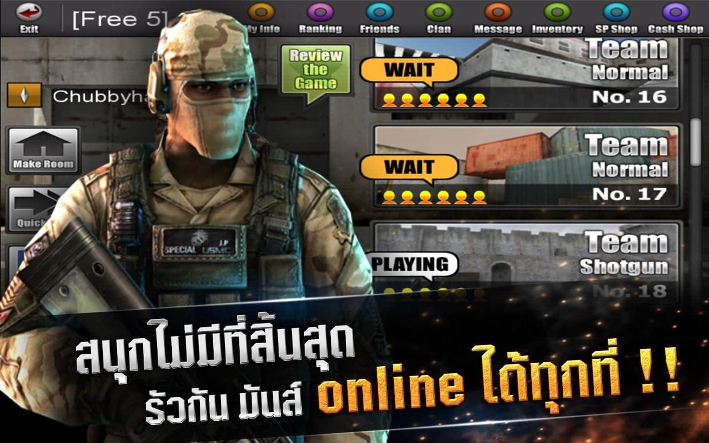 Special Force – NET – онлайн стрелялка на андроид. Многопользовательский шутер реального времени, подарит вам много увлекательных часов игры. В игре вас ждет более 10 карт, 6 разнообразных режимов игры и самое главное - это оружие, которого в игре хоть отбавляй, более 30 видов вооружения смогут удивить даже самого придирчивого геймера. Также вы можете сменить костюмы своему персонажу.