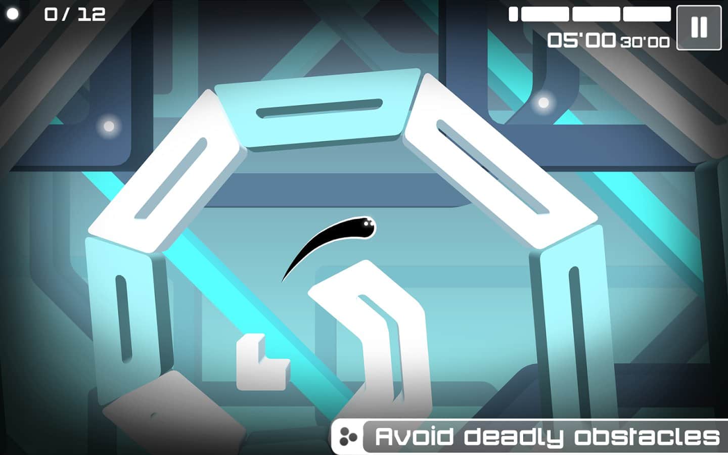 Тут еще кэш на 50мб должен быть. Сама аркада неплохая, две кнопки вверх/вниз и поворот девайса влево-вправо. Цель игры - пройти уровень на время и собрать все точки.