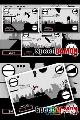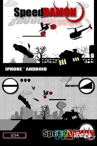 Ну что ж - игра Speed Damon - не просто очередные мотогонки на Андроид. Эта игра требует и смекалки, и скорости. Ваша задача - сделать все возможное и не возможное :) , чтобы ваш гонщик добрался до конца своего нелегкого пути! По дороге его будут ждать ямы, болота, пропасти, реки, канавы, помехи в виде других мотоциклов, самолетов, домов и пр. Вам нужно строить мосты, трамплины, а также помогать уворачиваться от ударов о препятствия! Ох, задача нелегка, но...не бывает ничего невозможного. Спешите скачать Speed Damon для андроид и насладиться необычностью мотогонок!