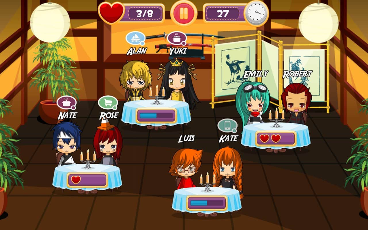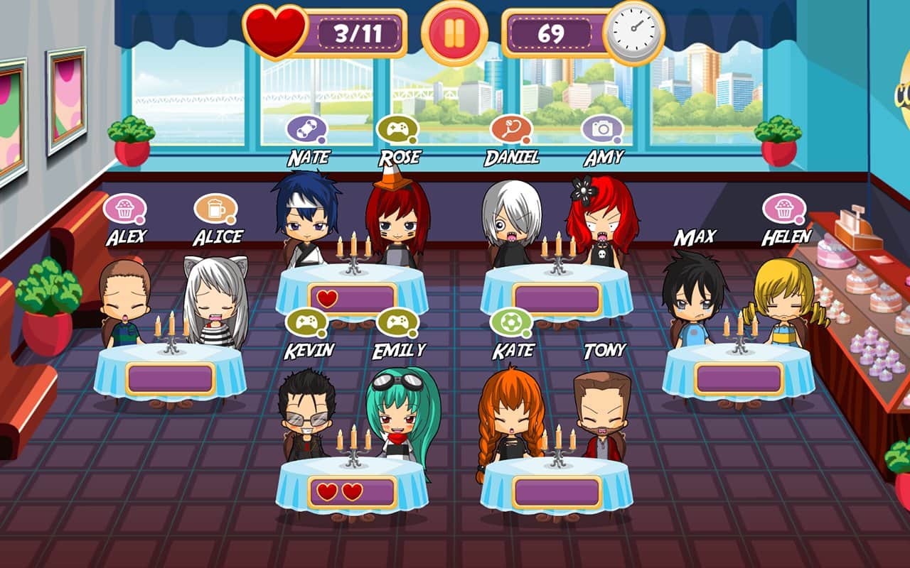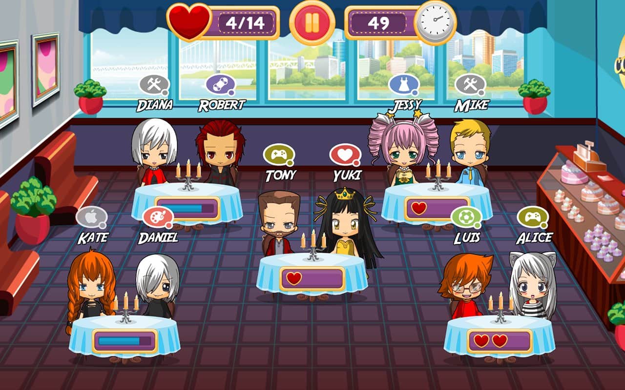 Speed Dating - увлекательная игра для детей и взрослых в которой они будут помогать героям игры находить свою половинку на быстром свидании. Эта игра разработана для того чтобы наши герои нашли себе пару. Перемещайте персонажей, рассаживая их по разным столикам так, чтобы они нашли партнера по увлечениям. В этом вам помогут облачка, возникающие у героев над головами, в них вы сможете понять, чем увлекается тот или иной герой. Комбинируйте ваших героев и набирайте достаточное количество очков, чтобы пройти уровень. В игре есть несколько игровых режимов, каждый режим отличается своими индивидуальными особенностями такими как, подобрать пару за короткое время, за определенное количество перемещений, а также запомнить кто с кем сидел чтобы также их рассадить.
