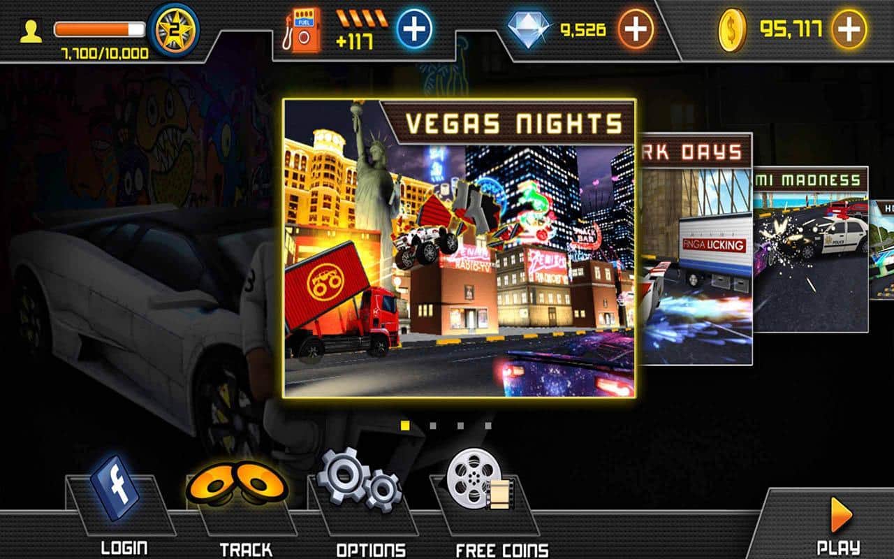 Speed Gods – примите свое участие в динамичных гонках этой игры на андроид, и проедьтесь по ночным улицам Нью-Йорка, Лас-Вегаса и другим городам. Давите на педаль газа и разгоняйте свой автомобиль до предельных скоростей и лавируйте в потоке бесконечного транспорта, обгоняя впереди едущие машины. Гоняйте на огромной скорости по дорогам и шоссе города и не создавайте аварийных ситуаций на дороге. По пути своего следования собирайте монетки и бонусы, которые позволят вам таранить впереди едущих соперников и сбрасывать их с дороги. Ездите по многочисленным трассам игры в компании многочисленных соперников и подлетайте на трамплинах пытаясь обогнать другие машины.