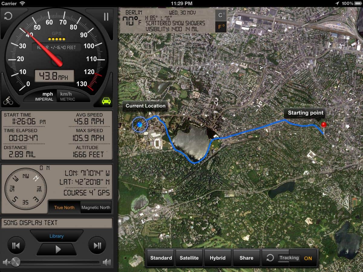 В машине хорошо: все нужные данные всегда перед глазами. А что делать велосипедистам, которым тоже хочется такого комфорта? Например, установить данное приложение. Оно позволяет отслеживать скорость, с которой вы передвигаетесь, собирает статистику о точке начала и конца маршрута, среднюю и максимальную скорость, расстояние, а также быстро управлять плеером. Для более удобного вывода информации используется несколько типов карт на выбор пользователя, предусмотрена метрическая система, имеется встроенный компас.