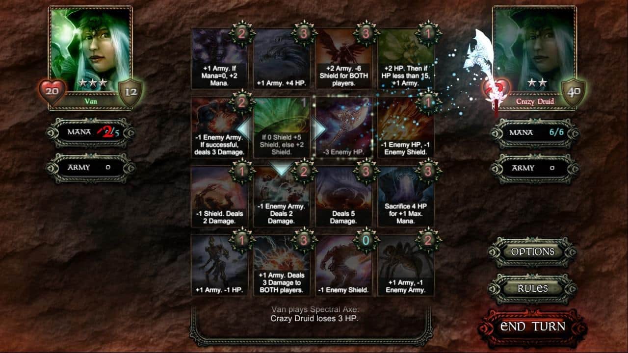 Spellchain - пошаговая карточная игра на аndroid, в которой вам предстоит бороться с сильными противниками. Используя различные карты, вы сможете делать комбо удары и остановить волны атак от соперника. А также используйте заклинания, либо вызовите огромную армию и победите соперника. Разрабатывайте вашу стратегию и применяйте ее на деле.