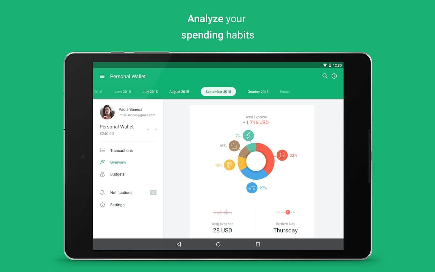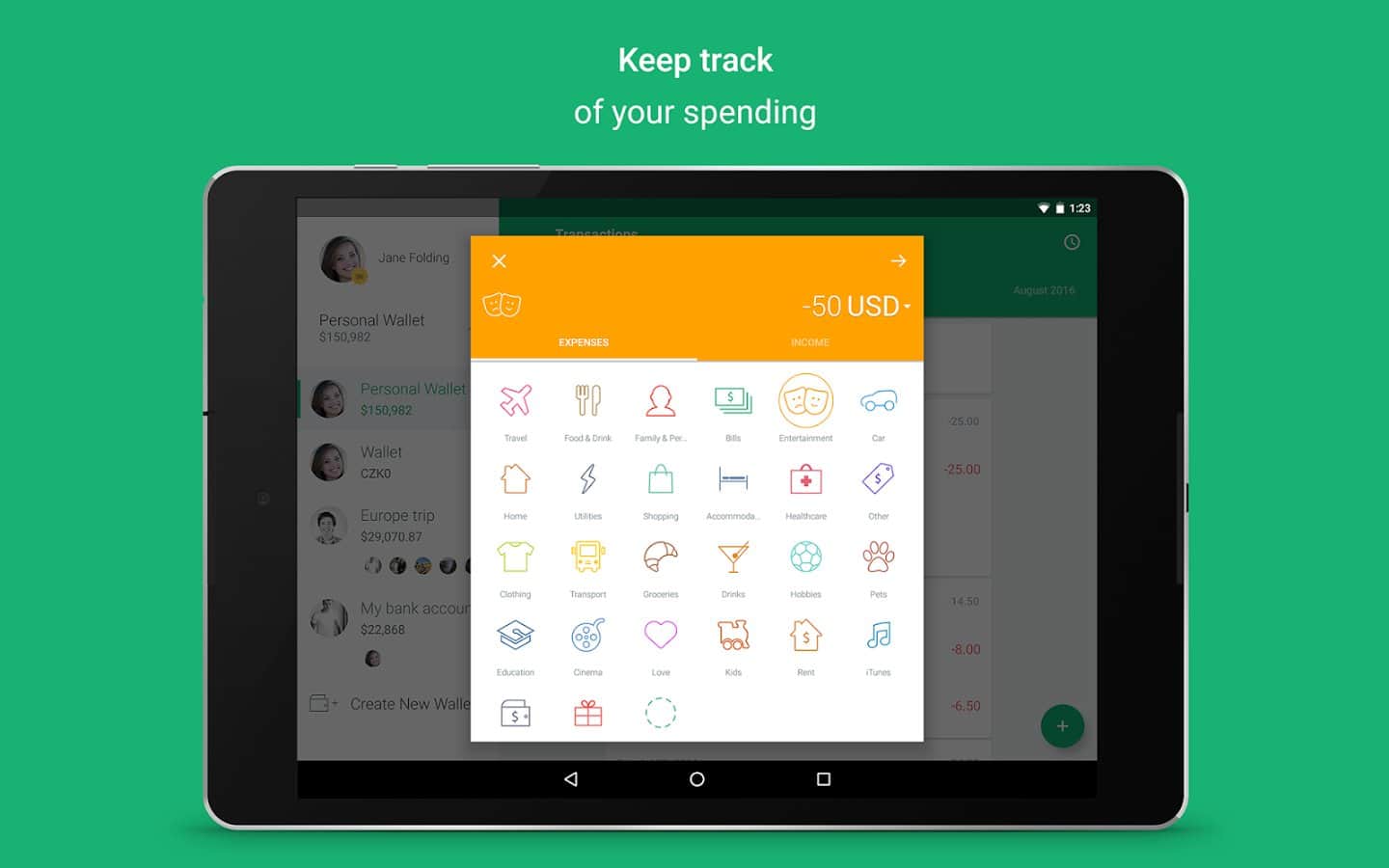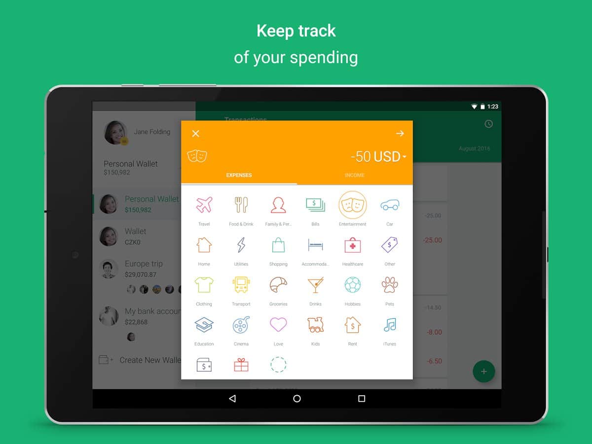 Spendee - Постоянно выкидываете деньги на ветер, и никак не можете остановится, тогда просто контролируйте свои расходы, с этим простым и очень красочным приложением. Вы сможете записывать сюда свои доходы, а потом вычитать из них все расходы, к тому же отображение всего этого можно менять и делать в виде графика, при этом разделяя весь график на разделы со своими значками для более удобного восприятия.
